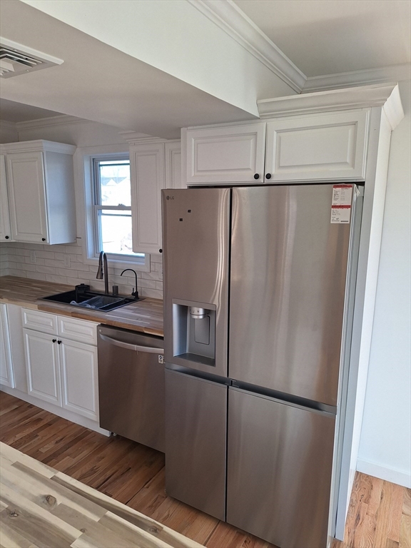 Complete gut rehab and expansion in a much desired Fall River neighborhood. Four bedrooms and three and a half baths are all brand new. Level one is a completely gutted in law-suite with one bedroom full bathroom and kitchen with washer and dryer hookups and small living room with stairwell access to main living area and storage. Level two is an open concept with kitchen dining and living area. All new stainless steel appliances. Flat screen tv is included. Level three which includes master bedroom/bathroom and two additional bedrooms with another bathroom is a brand new expansion. All brand new 200 amp electrical service. All new plumbing and gas lines. All new insulation windows vinyl siding and roof. Entire driveway was just paved and can fit up to 4 cars. Close to shopping and easy access to highways. And Yes there is a DD in your backyard. Priced for a quick sale. Agent is owner.