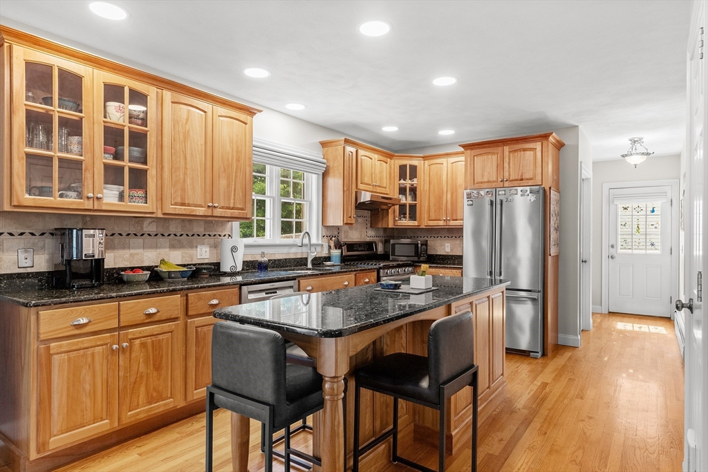 Move right into this meticulously maintained Colonial offering over 2,500 sq ft of living space, privately set on a .25-acre lot close to the town center. This well-appointed 8-room home built by a local high-end builder, features 3 bedrooms and 3.5 baths with exceptional quality and attention to detail throughout. Highlights include: granite/stainless kitchen open to family room w/ a fireplace & a finished third floor with a full bathroom, wood floors throughout, crown molding, transom windows & two brick fireplaces—one located in the primary bedroom. Newer mini- splits throughout ensure additional heat and cooling, new Anderson windows, 3rd floor, exterior freshly painted, and newer hot water heater. .Nothing to do but move in! Enjoy beautifully sculpted stone walls, custom shed, a paver walkway and patio, and professionally landscaped grounds and a grassy play yard. A rare opportunity to own a truly special property—don’t miss it!