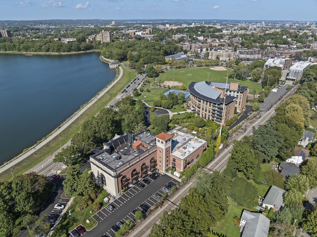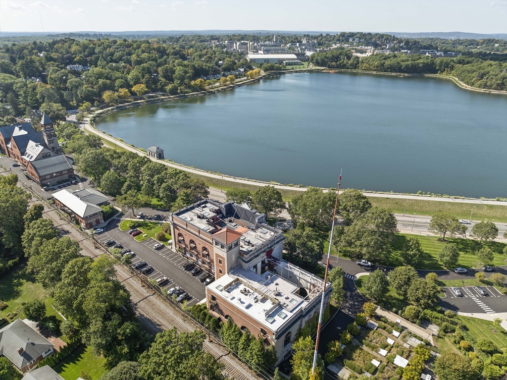 Stunning and sophisticated, this modern, thoughtfully designed skylit penthouse condo in the exclusive Whitehall elevator building at The Waterworks delights the most discerning buyer. Fabulous architecturally significant details and flexible living spaces designed for single-level living, including 2 garage parking spaces with elevator service to the 4th floor. Wonderfully bright & spacious with soaring ceilings, skylight and balcony, a recent top-of-the-line renovation with high-end appointments offers impressive tech features.The gracious entertaining area, bathed in natural light, overlooks the reservoir and fountain.Two large en suite bedrooms feature beautifully appointed bathrooms & sleek designer closets.Full-service concierge building with the ultimate in modern conveniences and comfort: on-site gym, storage, desk security, function room, guest parking, on-site management. Electric car charging right outside. Next to BC, the CH Reservoir, shopping, MBTA. Luxury at its finest!