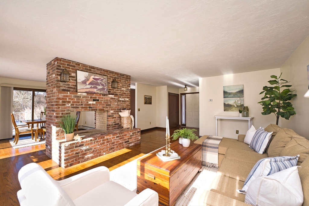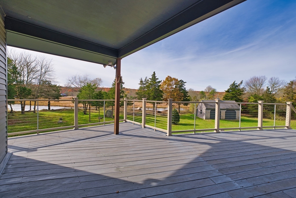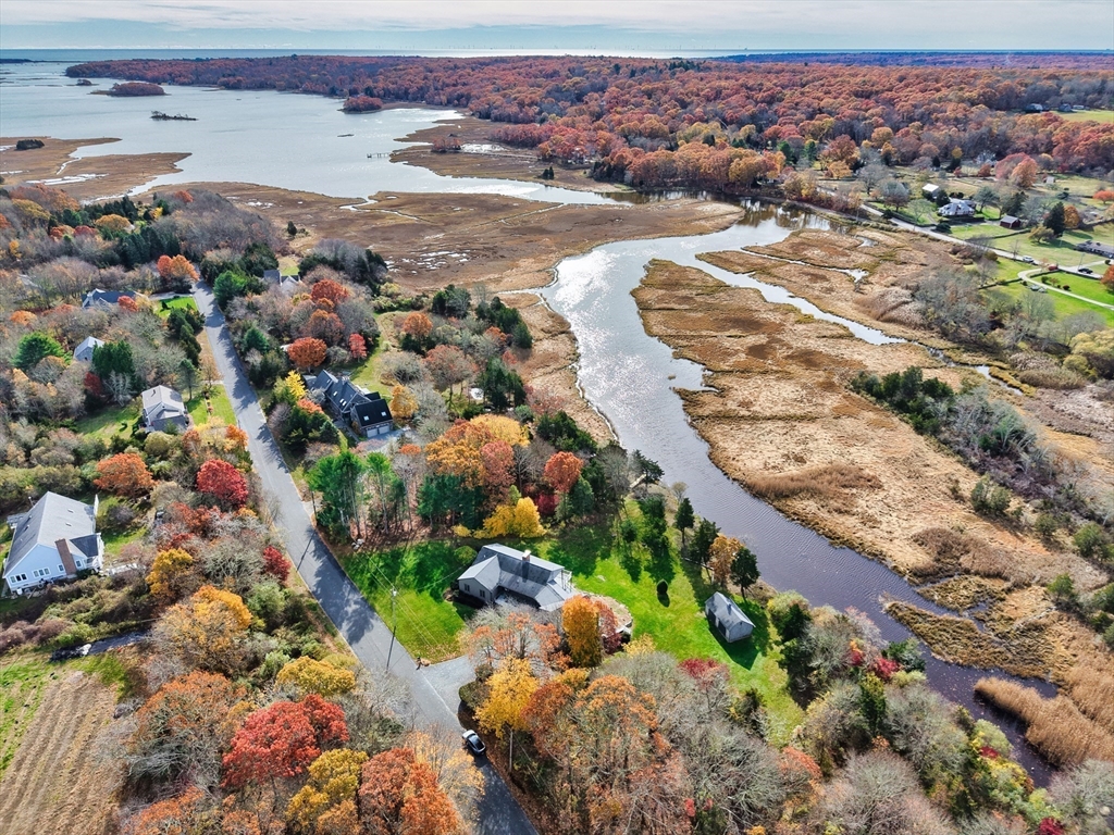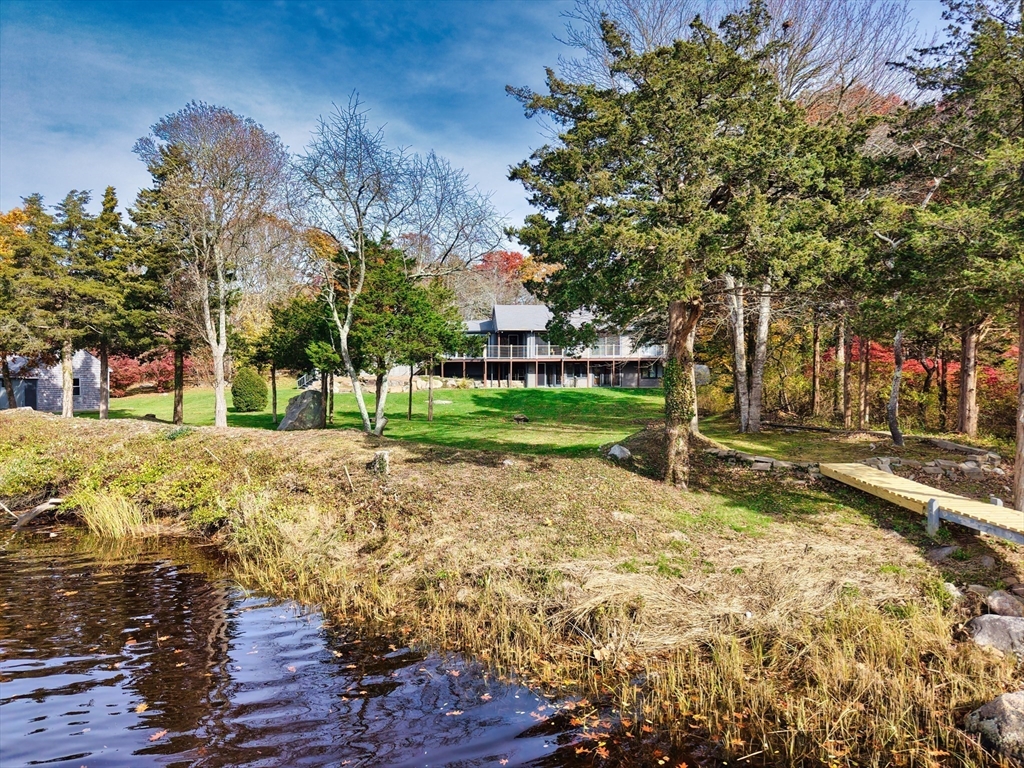 Exceptionally located on 1.8 acres along the West Branch of the Westport River, this well-maintained four-bedroom, three-bath home offers hardwood floors throughout and effortless waterfront living. Nearly every room opens via sliders to a waterside mahogany deck overlooking the river.The main level features a first-floor primary en suite, two guest bedrooms, a full bath, and living and dining rooms divided by a double-sided fireplace, plus an eat-in kitchen. A bright mudroom sits just off the oversized two-bay garage, and a barn provides additional storage or recreational space. The walk-out lower level offers in-law or guest suite potential with stone flooring, bedroom, full bath, and direct access to the river. Recent updates include a new roof and septic system. A private dock is ideal for kayaking or launching a small Whaler. Located in the heart of coveted Acoaxet, close to beaches, the club, and yacht club.