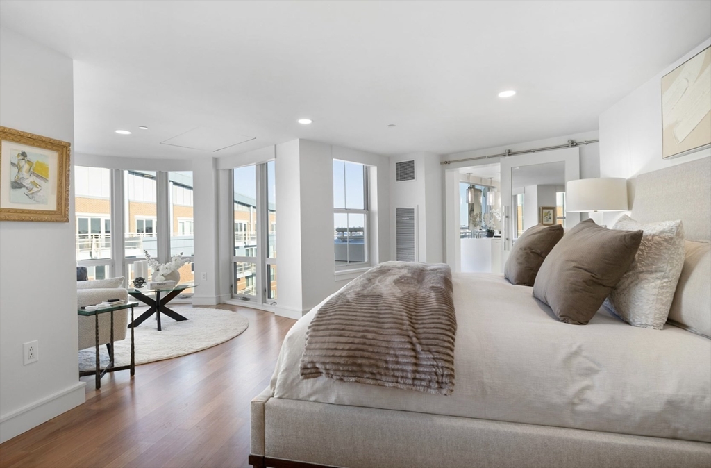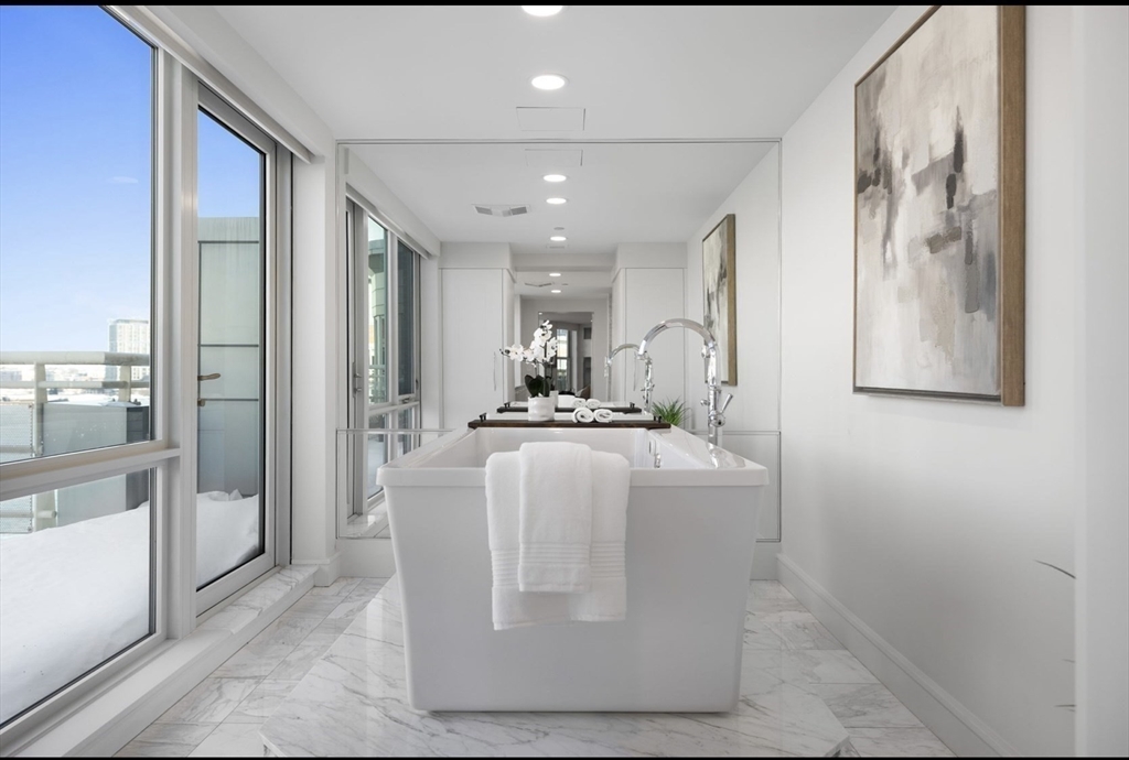 “ Vacation In Your Living-room “at Battery Wharf ! A private drive takes you to the Harbor's Edge where yr concierge greets you. The elevator whisks you to The Penthouse level. Upon entering this impeccable home you are enveloped in luxury. This 2-3 bedroom home showcases city and water views. A perfect open floor-plan takes advantage of floor to ceiling glass with every room providing expansive terrace access. The kitchen showcases Neolith countertops with Subzero/Wolf appliances, custom cabinetry and pantry. The 3rd bed or den has built in shelving and custom office space. Oversized secondary bed has large walk in closet and spectacular spa like marble bath. The primary bed is incredible with a special sitting area overlooking the water. The en suite bath is nothing less than breathtaking. Simon Pierce lighting, twin sinks, and a heated soaking tub. Custom closets galore, auto Hunter Douglas blinds thru out, garage, storage, extra prking avail Hotel Services and EXHALE SPA