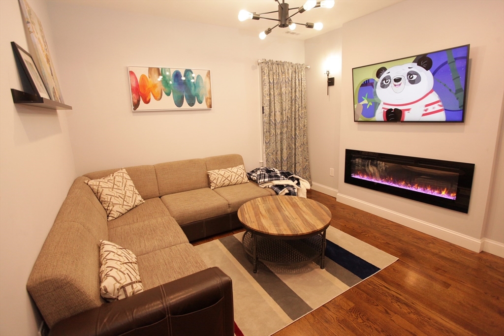 Could come FURNISHED or unfurnished.Beautiful 3- bedroom/1- bathroom apartment near Rivergreen Park and Wellington T station available for rent now! This unit features three full bedrooms, one modern bathroom, a living room with elegant electric fireplace as well as central AC/HVAC. The kitchen supplied with stainless steel appliances, this includes dishwasher, garbage disposal and refrigerator. Recessed lighting throughout. Washer and dryer in-unit. Brand new hardwood floors. Street parking is available along the Main St or Beacon St. This unit is located across the road from local 7-Eleven and only a block away from Rivergreen Park and Northern Strand Bike Trail. Other amenities within the neighborhood include Metro Rock Climbing Center, Sky Zone and multiple breweries and bars.