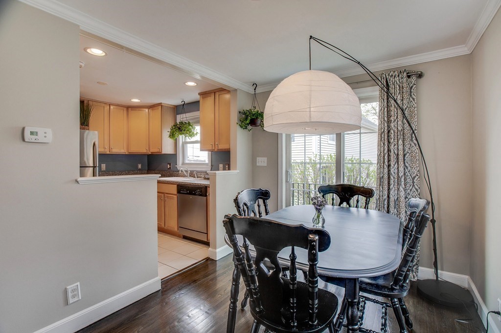 Desired Arlington location. Townhome with 2 bedrooms & 1 bath. Bright & open first floor has a kitchen with granite countertops, new installed dishwasher and refrigerator, stainless appliances, natural gas cooking with 36”cabinets and dark walnut hardwood flooring. Spacious combined living and dining area. The second floor with 2 bedrooms, each having walk in closets. The newer bathroom features updated lighting, a newer vanity and wood plank porcelain tile. Brand new water heater. Laundry in the basement, pull down attic offer all the storage space necessary. 2 car deeded parking. 3 miles to the Alewife train station, bus transportation at your doorstep(#67 and 77) and access to Minuteman bike trail, Spy pond. In an excellent location very close to playgrounds, elementary school, skating rink, Trader Joe's, Starbucks, Whole Foods, and town center,