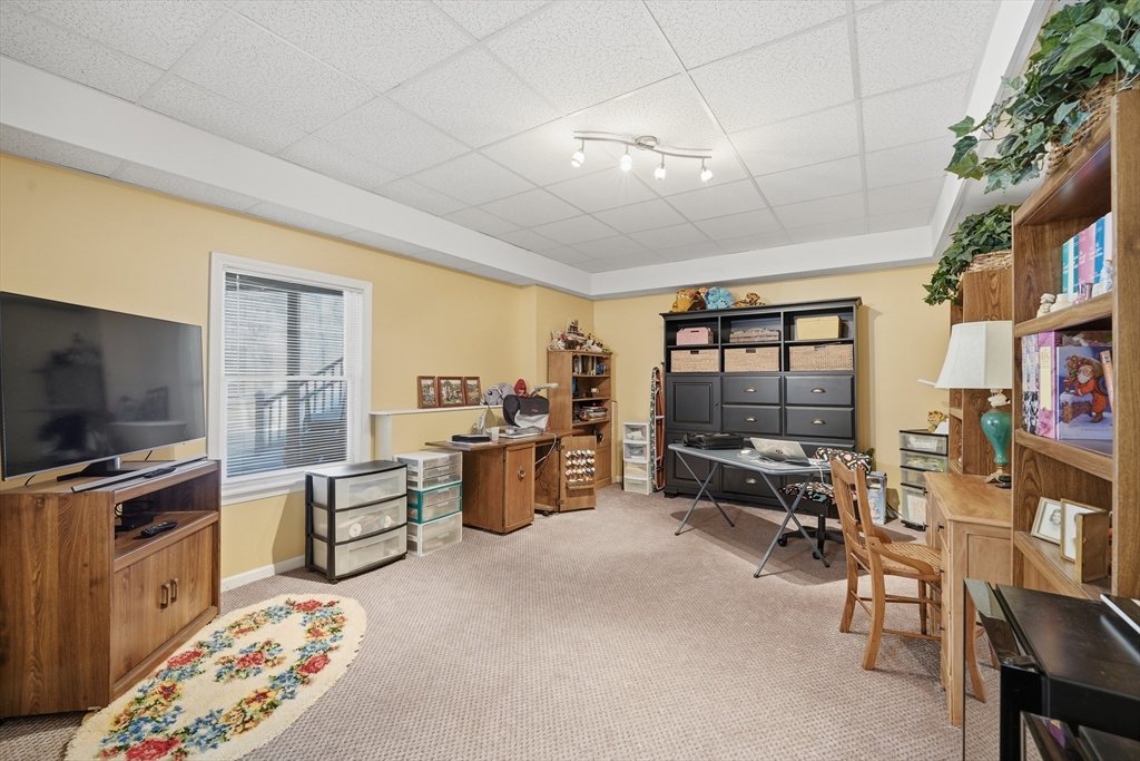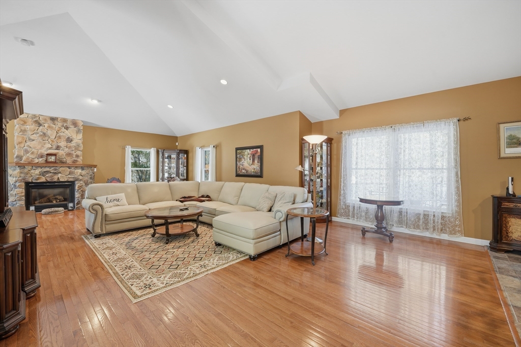 This executive ranch features a stunning culdesac location abutting conservation land and amazing spacious open interior for easy flow/connectivity. Foyer leads to office w/french doors, gorgeous great room w/hardwood floors, stone gas fireplace, dining area and windows bring in natural light w/views of your private backyard/amazing deck! Greatroom leads to bar counter space open kitchen w/picturesque beams, granite kitchen island, additional eating area leading to deck! Formal livingroom/sitting area to relax, read/enjoy! Main bedroom suite has its own fabulous recent upgraded own bathroom.1st floor laundryroom for convenience and another full bathroom. Lower walkout level shows off amazing space, foyer has w/sitting area familyroom/recreation room, bar, another room used as 4th bedroom, full bath, additional room w/many options. Lower level also leads to 4 car garage, doors to outside patio under deck. Great inlaw potential! Plenty of storage, whole house generator, many upgrades!