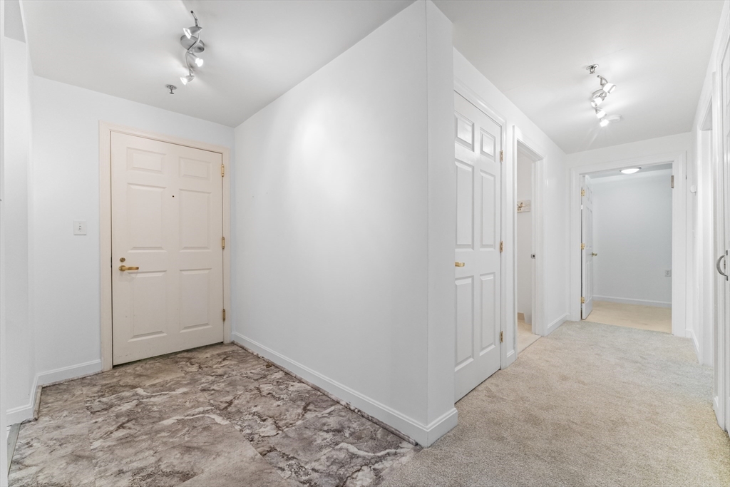Welcome to The Monarch- where elegance and convenience converge at the Brighton/Brookline border. Nestled on lush, manicured grounds, this expansive 1,000+ sq. ft. condo offers a peaceful retreat amidst urban vibrancy. Step inside & be greeted by sunlit interiors framed by serene park views. The spacious primary suite features a Juliet balcony, en suite bath, and a calming ambiance, while the second bedroom and full guest bath provide ample versatility. Modern comforts abound with central AC, in-unit laundry, and a kitchen outfitted with granite countertops and stainless steel appliances. The living room, refreshed with plush new carpeting, invites relaxation.This impeccably maintained complex boasts thoughtful amenities, including an assigned garage parking spot, guest parking, on-site maintenance and elevators. Ideally located just steps from Whole Foods, the Green Line (B), local restaurants, cafés, & shops—and only half a mile from Washington Square & the Green Line (C).