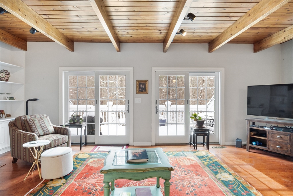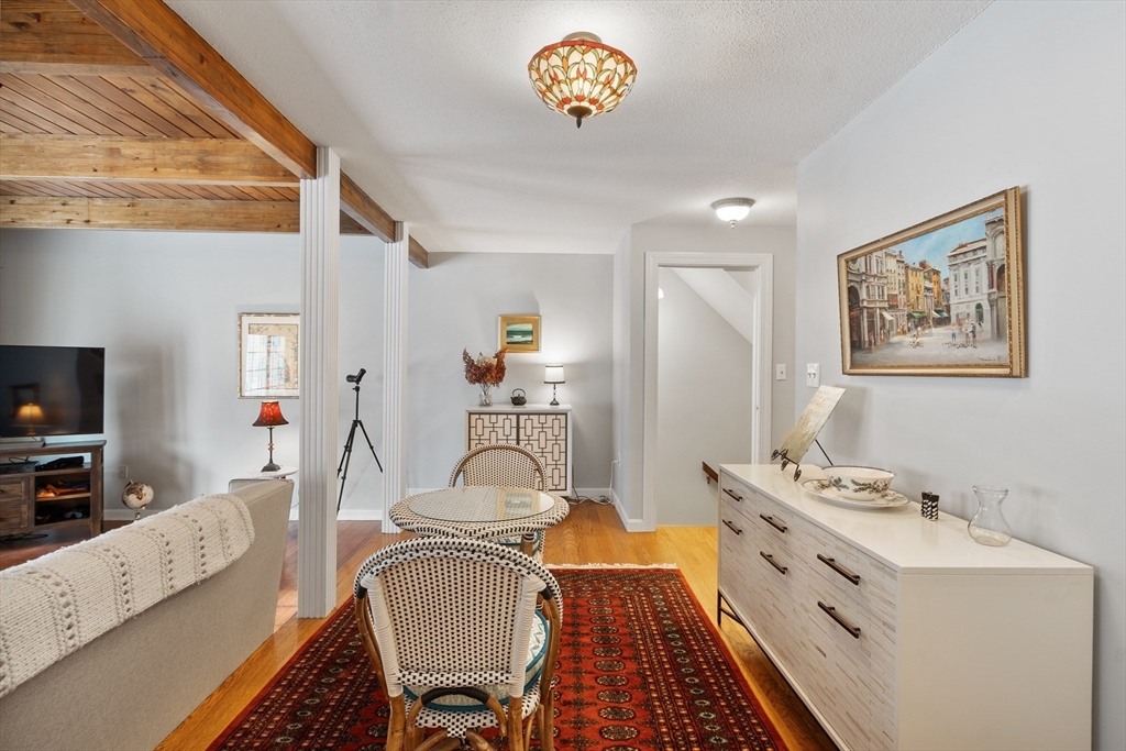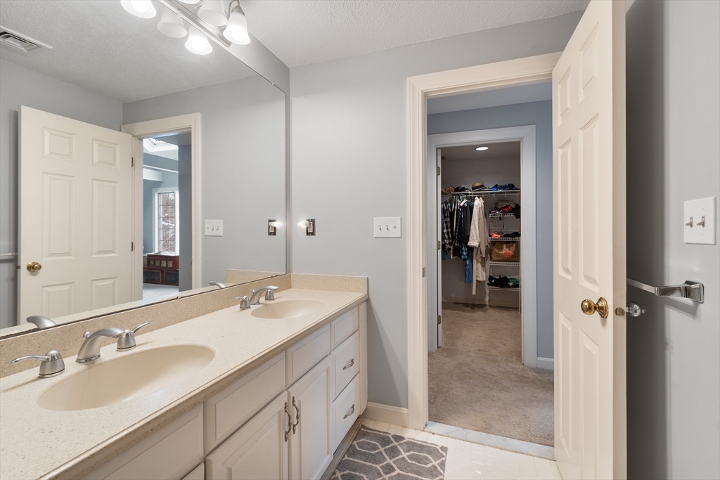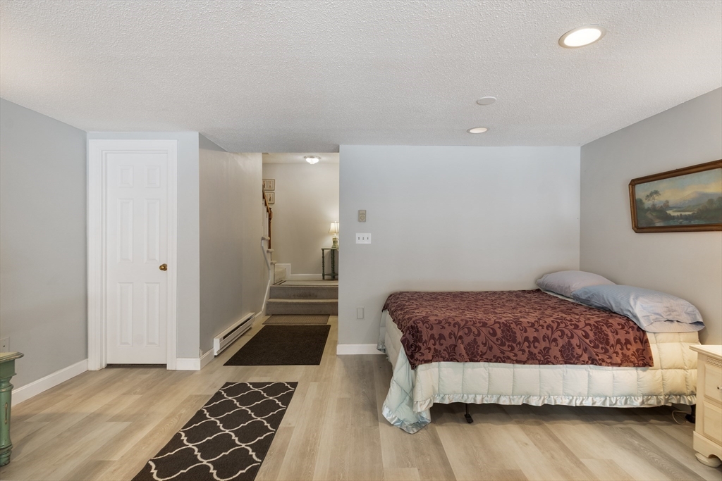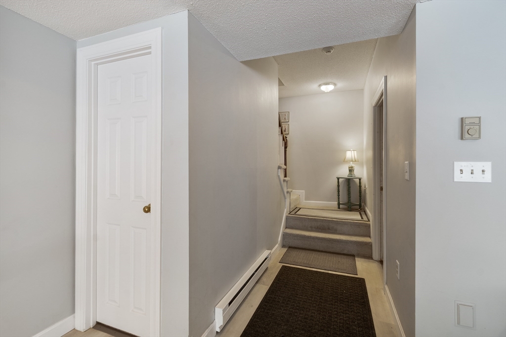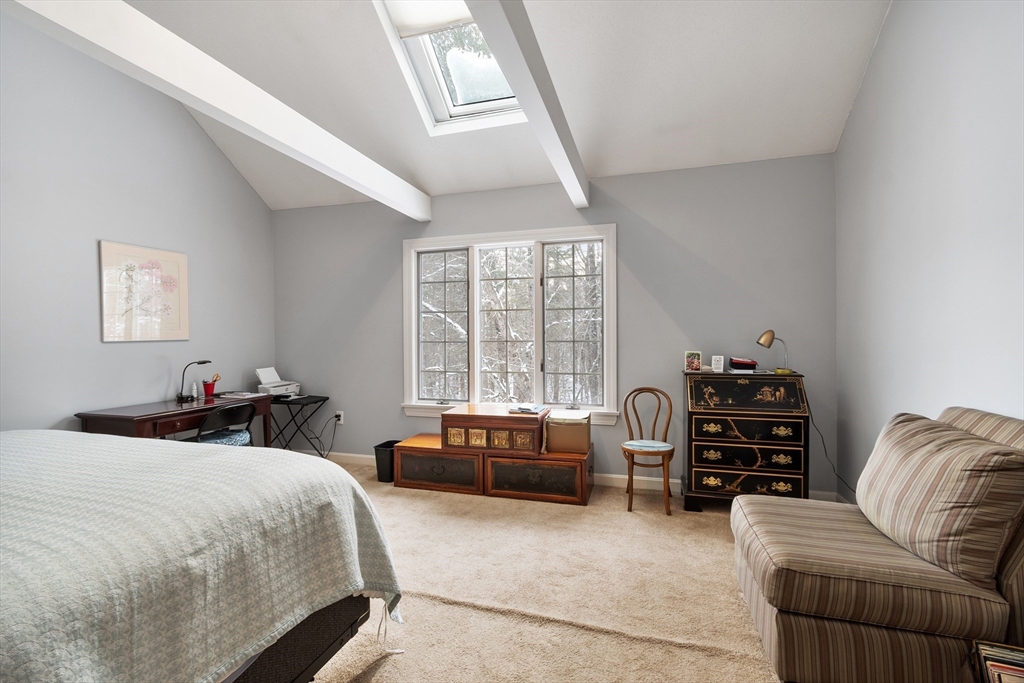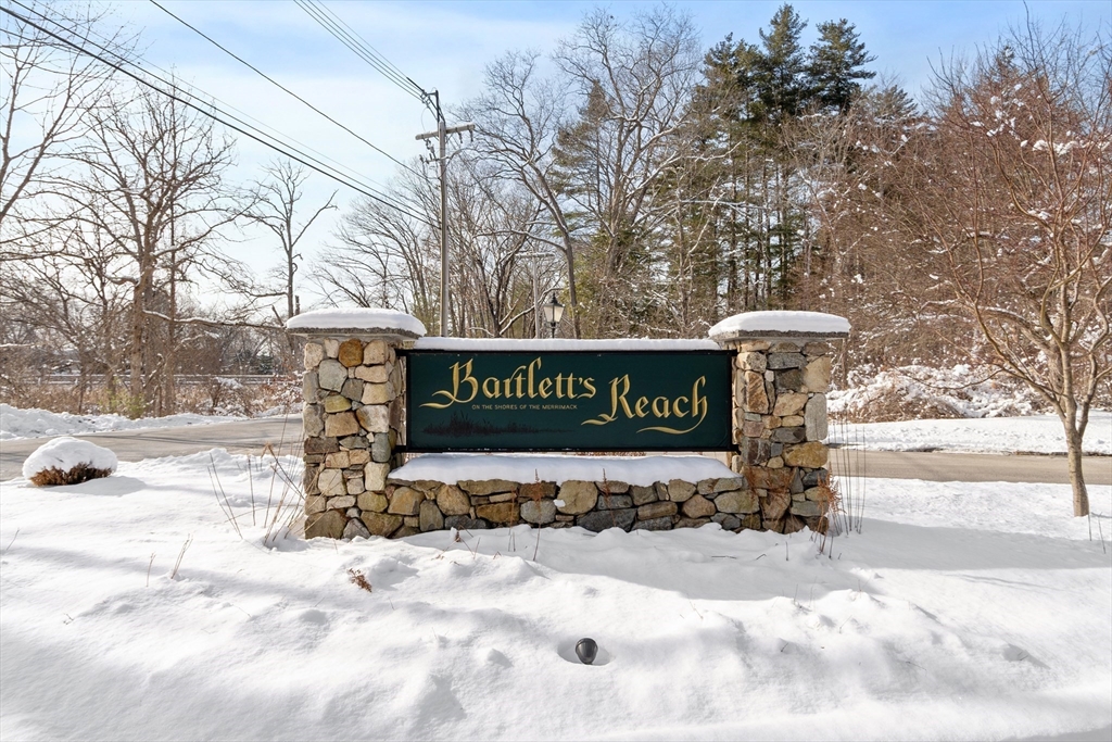 A rare offering in the desirable Bartlett's Reach. This well-maintained townhouse across from the Merrimack River features a well-equipped eat-in kitchen with pantry and a formal dining area overlooking a large sunken great room with a fireplace and glass doors opening to a private deck perfect for entertaining. The second floor has an oversized primary bedroom with ensuite bath, walk-in closet and cathedral ceiling with skylight. The generous second bedroom includes a wall of closets, full bath and a stairway leading to a walk-up attic. A spacious lower level boasts a fireplace, built-ins, new flooring, direct access to a private patio, or use as an office and/or guest room. There is a large storage room which includes mechanicals on this level. Other features include a garage space and full-sized w/d off the kitchen. The beautifully maintained Bartlett's Reach offers amenities including a clubhouse, inground pool, tennis and pickleball courts, walking paths, mooring rights and more.