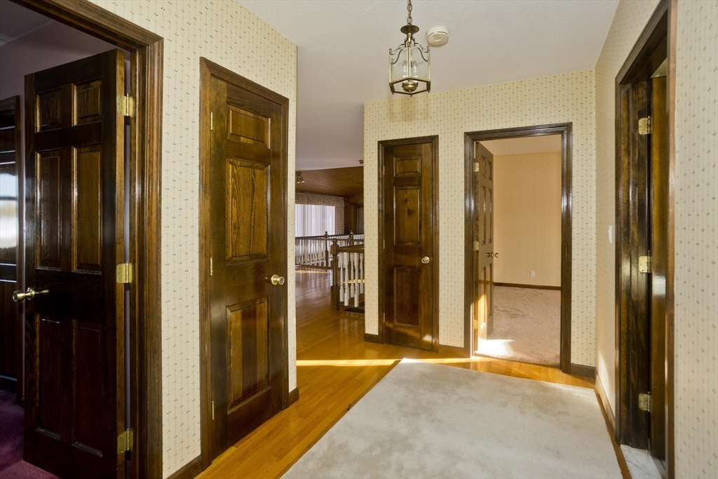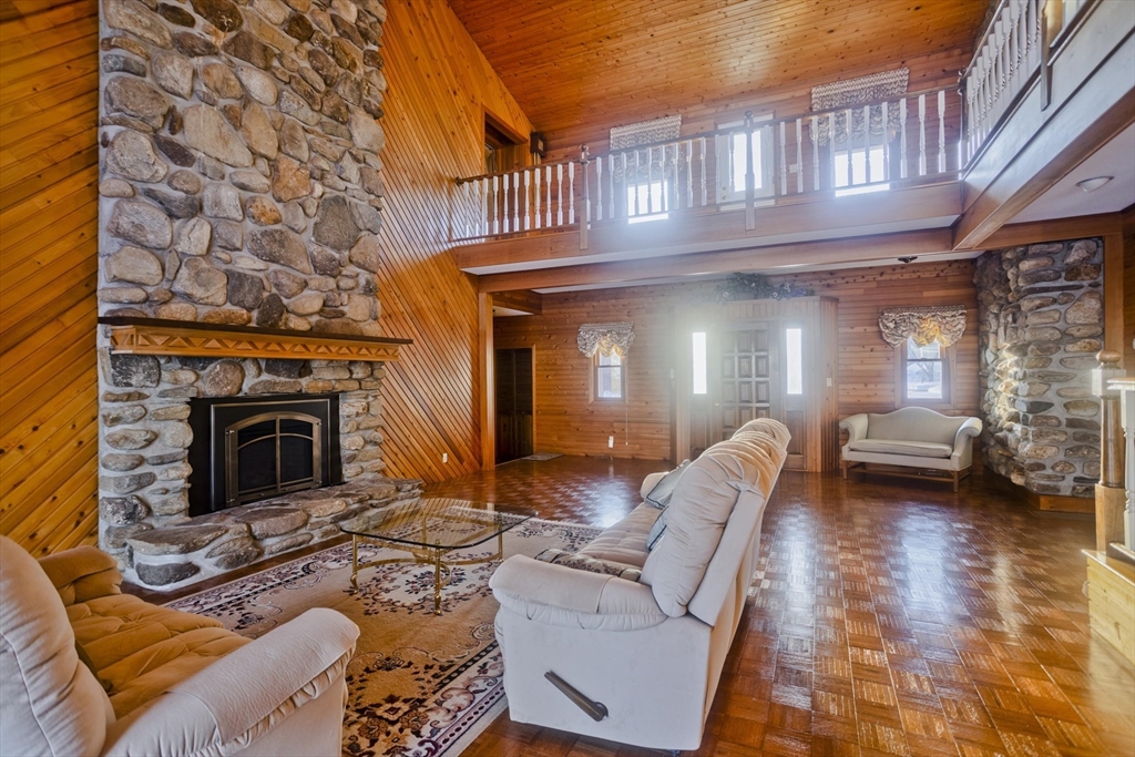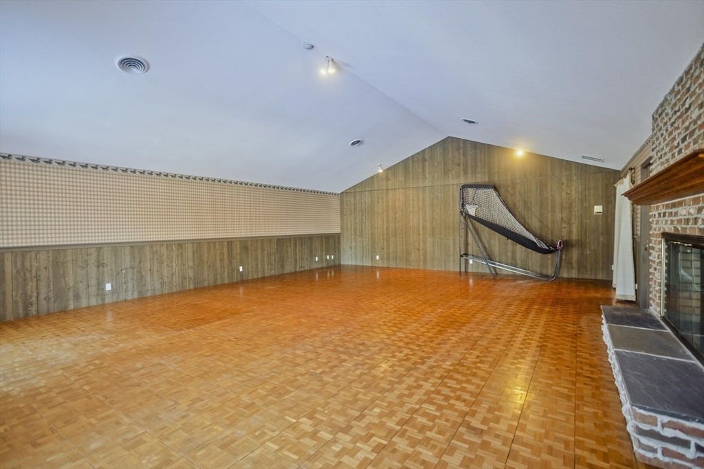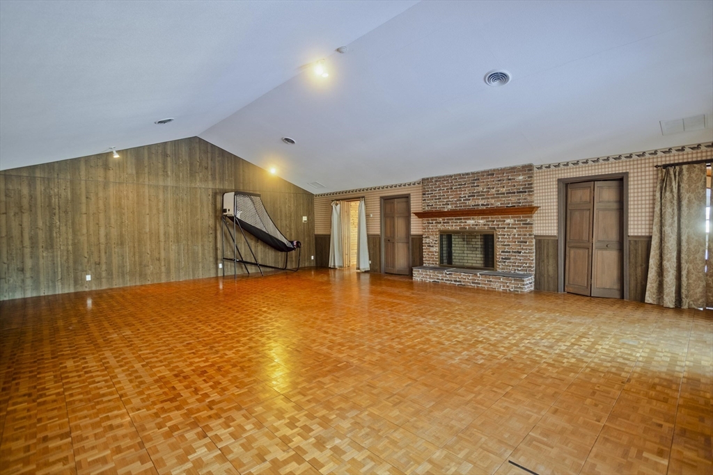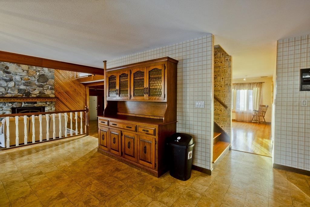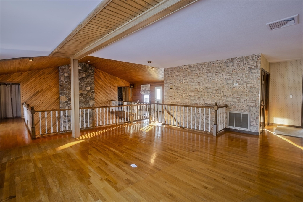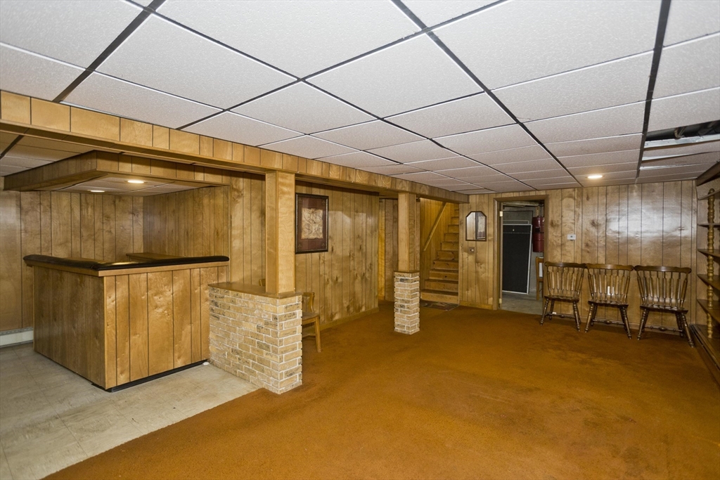 This house feels like a love letter to craftsmanship and warm, unapologetic vintage charm! From the moment you step into the living room, you’re wrapped in rich, honey-toned wood walls that run floor to ceiling w/natural light open to the 2nd floor. The home offers 4 generously sized bedrooms and 3 full bathrooms, including an exceptionally large primary suite w/two closets and it's own en-suite. The kitchen features beautiful vintage cabinetry full of character and original detail, impossible to replicate today. One of the most charming details is the original intercom system w/a built-in tape player and radio. Downstairs, the finished basement opens into a full bar and entertainment space giving retro lounge vibes! Back on the second floor you'll find an expansive game room full of natural light, another fireplace and large sliders just waiting for a balcony to be added. Outside is stone walkways, a stone patio and an above ground pool. This home is 4,800 sq ft of pure vintage joy!