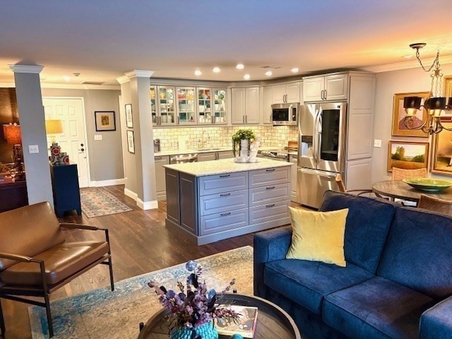 Concord building resale unit was fully renovated in 2019 New LVP flooring throughout, upgraded electrical and new led lighting, expanded kitchen with new cabinets, appliances and large center island. Quartz counter tops, bathroom fixtures replace and large new Walkin shower installed in main bath. Bosh washer and dryer. Closets are all finished with Ikea closet organizers The two televisions mounted on the wall stay with the unit. Extra storage in the basement and underground parking.