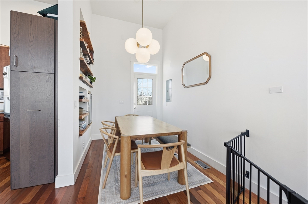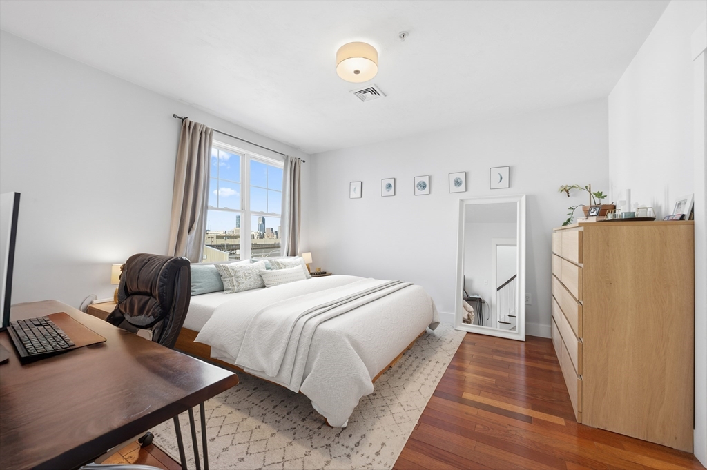 Penthouse duplex w/ direct entry & a parking space offers a true townhouse feel. Ideally located in the heart of Andrew Square, nestled right next to the Dorchester Corridor’s major redevelopment. This thoughtfully designed inverted layout maximizes natural light & captures city skyline views. The open concept kitchen, living & dining area provides excellent entertaining space & opens to a private deck perfectly sized for comfortable seating. Soaring ceilings throughout enhance the home’s bright and airy feel. Elegant staircases connect the levels while offering opportunities for storage or design accents. Both bedrooms are generously sized and each has its own bathroom. Buying a condo on the edge of a major neighborhood transformation presents a rare opportunity to get in before values fully reflect what is coming. As new development, infrastructure, and amenities take shape, demand typically rises, driving appreciation and strengthening long term resale potential.