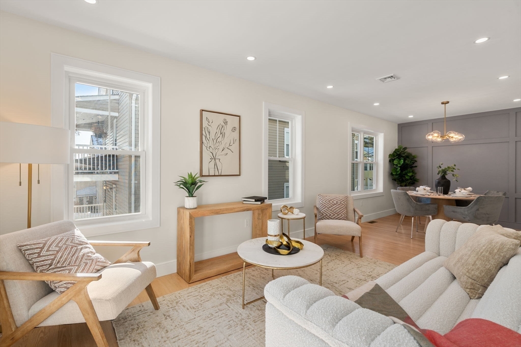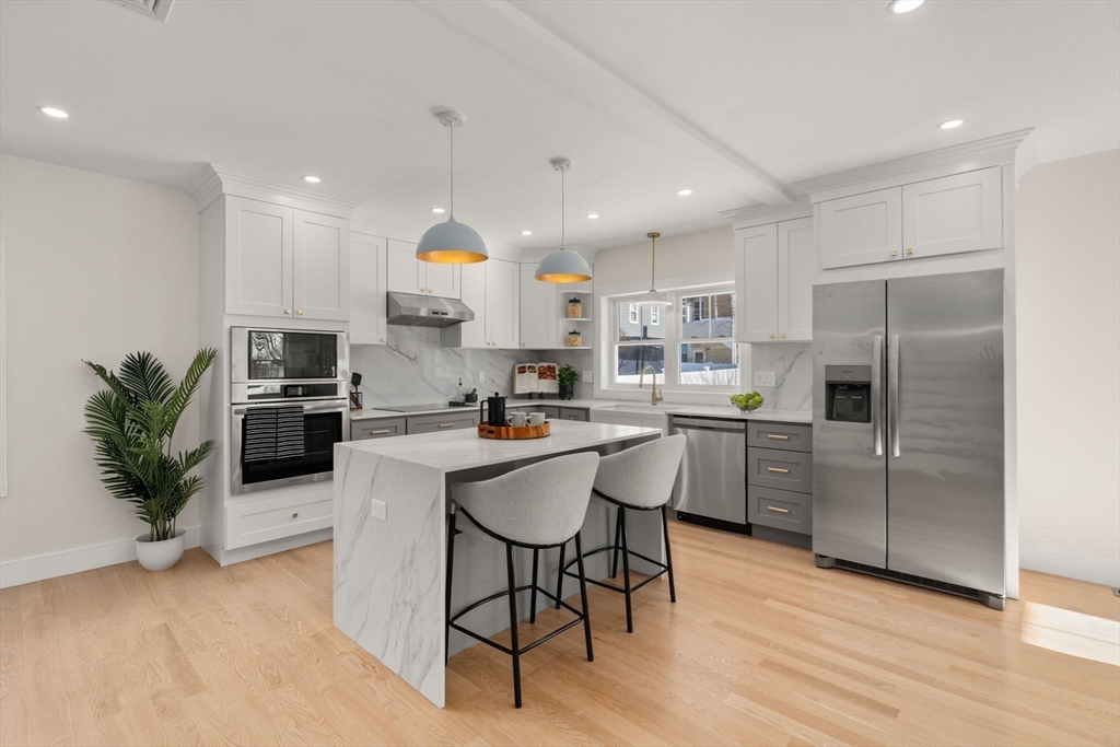 Beautiful NEW CONSTRUCTION 3-bed 3.5-bath townhome with exceptional indoor-outdoor space and privacy. The main level showcases a modern open-concept layout: a gourmet kitchen with waterfall island and quartz countertops, complemented by a chic powder room that will impress everyone. Going upstairs, you will first be greeted by a stunning accent wall mural that brings you joy. On the second floor, the primary suite boasts a stylish bathroom with a spacious walk-in closet, plus 2 bedrooms and a full bath provide comfort and functionality. The finished walk-out lower level with a full bath is another bonus: offering flexible living and entertainment space. On the outside, enjoy the dedicated backyard and ample driveway parking. Energy-efficient heat pump systems, central air, and fresh air system deliver modern sustainability. Ideally located near parks, Watertown Square amenities, and commuter routes. This home combines elegance, convenience, and comfort nested in a quiet neighborhood.
