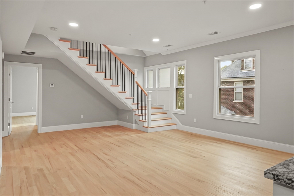 Beautifully renovated 3-bed, 2-bath duplex condo offering approx. 1,500 sq ft of modern living space in the heart of Grove Hall, Roxbury/Dorchester. Renovated in 2023, this sun-filled home spans levels 2 & 3, delivering privacy and a smart, functional layout. The main level features a primary bedroom, full bath, and an open-concept living, dining, and kitchen area with contemporary finishes—ideal for entertaining. The upper level offers two additional bedrooms and a full bathroom, perfect for guests, home office, or flexible living. Enjoy outdoor space on your private deck, plus the convenience of one assigned parking space. Grove Hall is a vibrant, culturally rich neighborhood with easy access to public transportation, local shops, restaurants, and parks. Not to mention this unit is a short walk to Franklin Park Golf Course, Zoo, and Walking Paths. A move-in-ready home offering space, style, and urban convenience.
