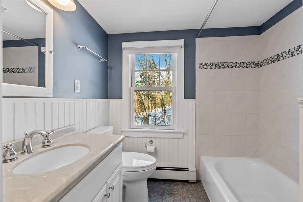 This beautifully expanded three-bedroom, three full bath Cape tucked back from the road on a peaceful 1.24-acre lot, offering both privacy and space. A spacious first-floor primary suite provides ideal one-level living, while the heart of the home features a huge open-concept kitchen, dining, and living area—perfect for everyday comfort and entertaining alike.Upstairs, you’ll find two additional bedrooms and a full bath, offering wonderful flexibility for family, guests, or home office needs. The walk out finished basement adds even more living space, along with abundant storage throughout the home.With its thoughtful layout, expansive living areas, and peaceful setting, this home offers the perfect blend of comfort, space, and versatility. Conveniently located near major routes and top Wayland schools.