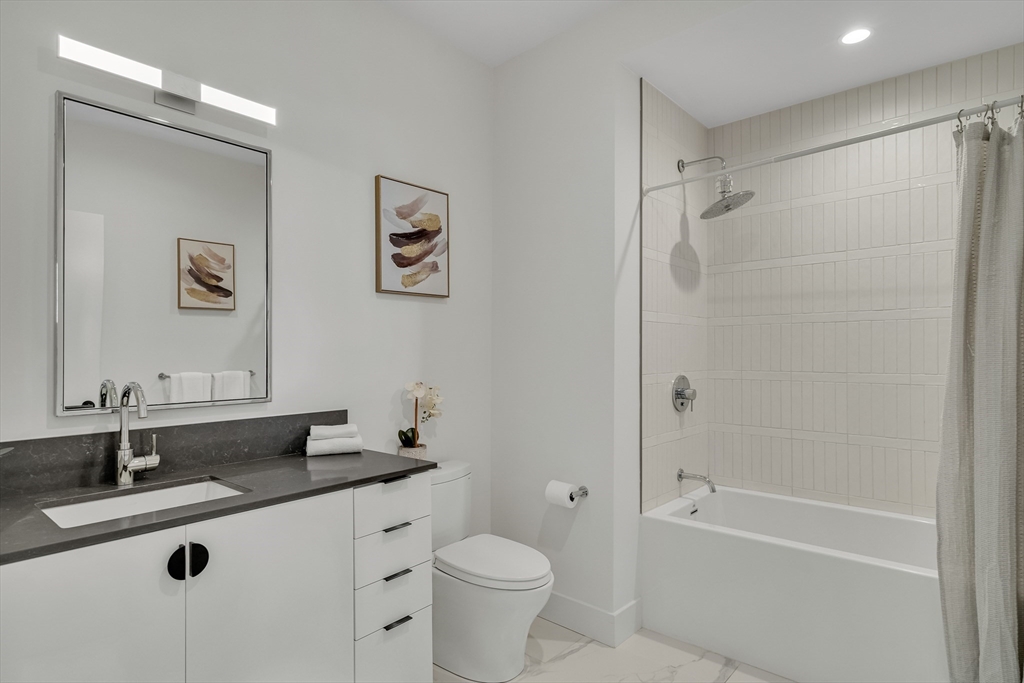 Experience refined city living in this thoughtfully designed 2023 residence. This courtyard-facing home offers two bedrooms, two full bathrooms, a private deck, and one garage parking space. The open-concept layout features a custom two-tone kitchen with premium integrated appliances and quartz countertops, complemented by spa-inspired bathrooms and refined finishes throughout. Designed with wellness, technology, and modern lifestyle in mind, residents enjoy access to exceptional amenities including a state-of-the-art fitness center with outdoor gym, rooftop yoga deck, and a rooftop lounge with skyline views, sun deck, outdoor kitchen, dining areas, and gas fireplace. Additional conveniences include concierge services, pet spa, bike storage, touchless elevators, and individual HVAC systems. Ideally located in close proximity to Northeastern University and Berklee College of Music, with convenient access to surrounding academic, cultural, and city amenities.