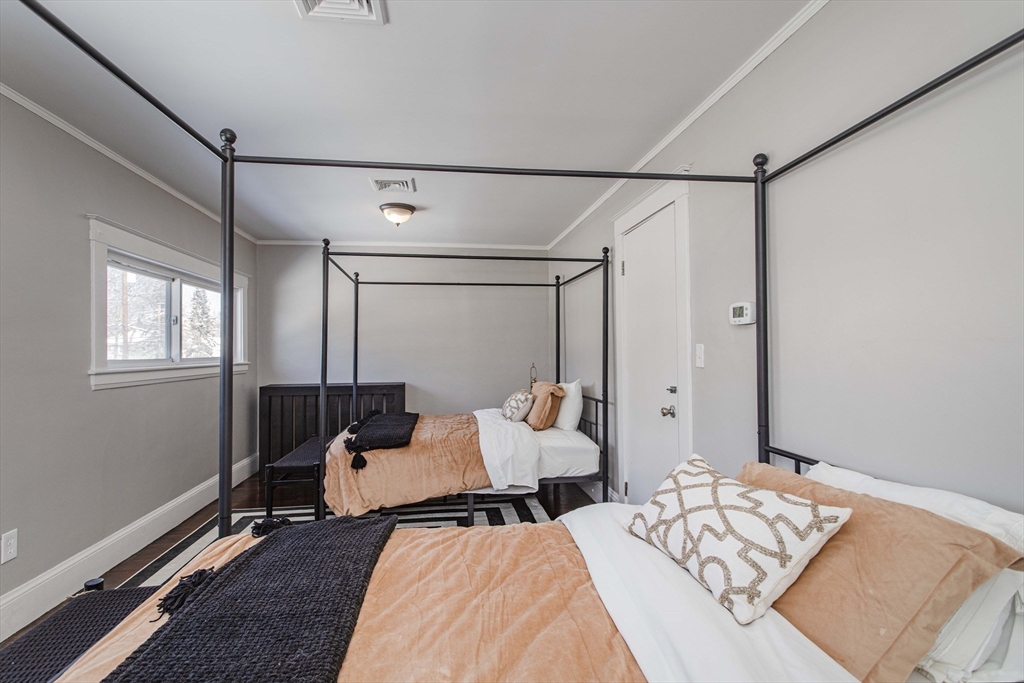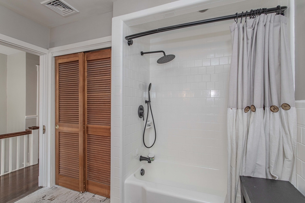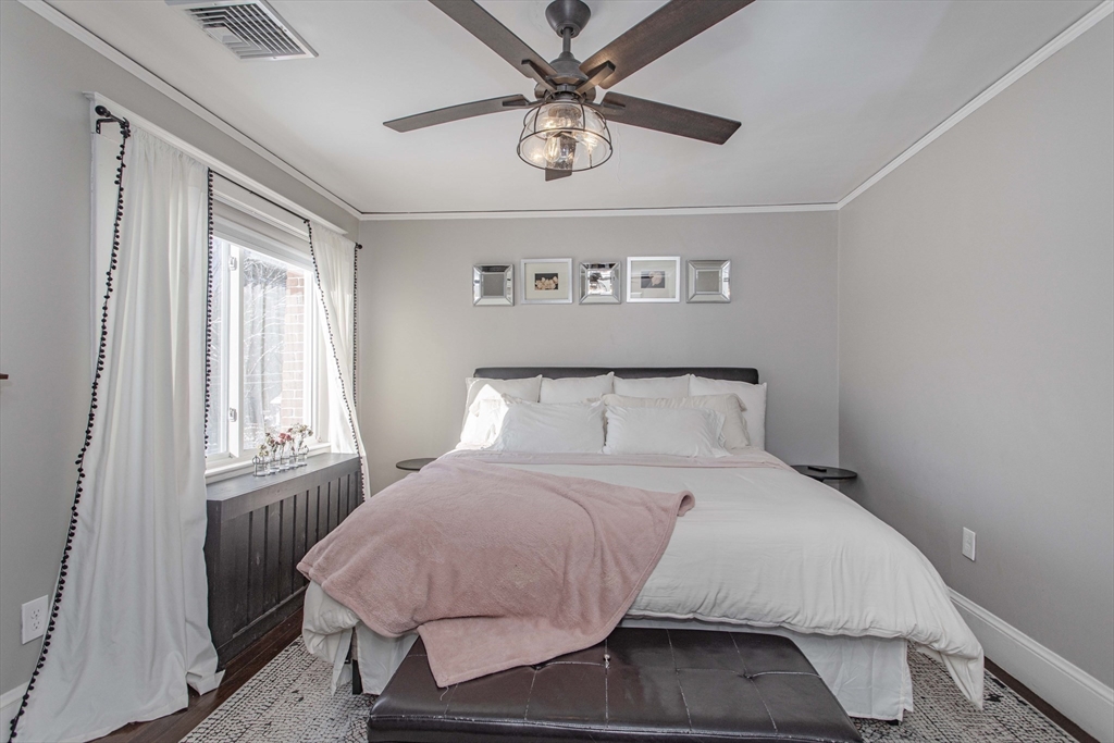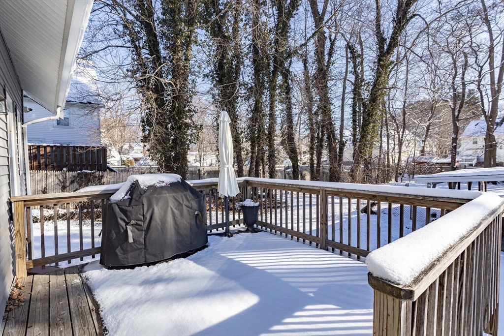 This sun-filled, move-in-ready home is set on an expansive, nearly double lot, and features 3 bedrooms/2 baths. It blends classic charm with thoughtful practical updates, including a renovated kitchen with stainless steel appliances, butcher block countertops, and new tile flooring; updated bathrooms; recessed lighting; refinished hardwood floors; and fresh interior paint with crisp white trim. Additional highlights include gas heat, central AC, updated plumbing, oversized windows, and abundant natural light. The main level offers a warm, flowing layout featuring a three-season porch, oversized living room, eat-in kitchen, formal dining room, dedicated office nook, and direct access to a deck - deal for entertaining. Upstairs, you’ll find three spacious bedrooms and an oversized full-bath with generous storage. Ideally located just steps from Walpole Center, local shops and restaurants, and the commuter rail, this home offers exceptional convenience in a commuter-friendly setting.