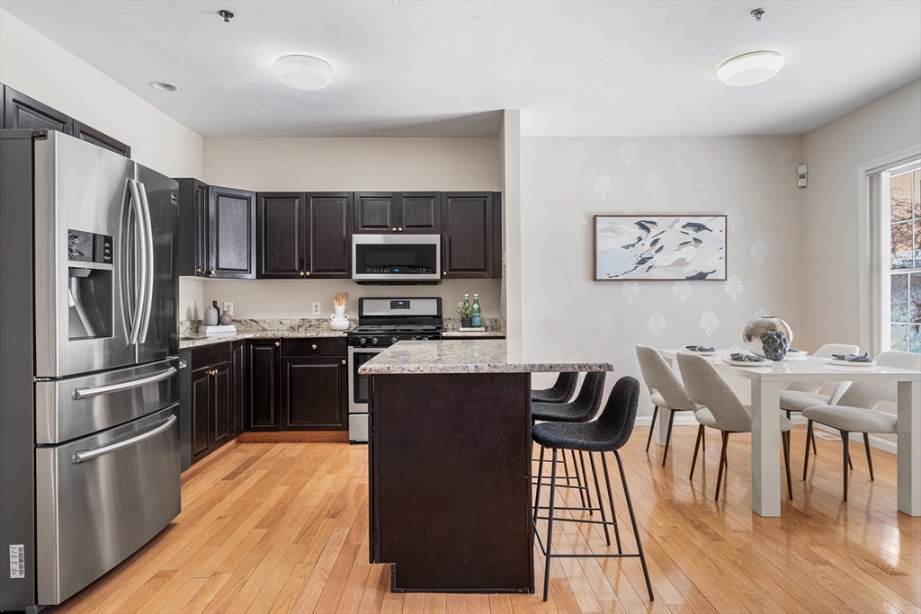 Located in the sought-after Woodbridge Station community, 36 Cambridge Rd #24 is a sunny, updated ground-level condo with no-stairs accessibility and a large private storage room—ideal for first-time buyers or downsizers seeking low-maintenance living without sacrificing location. The open-concept living area features high ceilings and a cozy corner gas fireplace, with space for both an eat-in kitchen and formal dining. The updated kitchen offers a granite island, stylish cabinetry, gas range, newer stainless steel appliances, and an RO drinking water system. The spacious primary bedroom includes a walk-in closet and a private bath with double vanity. Enjoy summer evenings on the recently updated screened-in porch. Additional highlights include in-unit laundry, two deeded parking spots, a 6-year-old roof, low HOA, and a prime location near shopping, Wayside Commons, and easy access to Rt 95 & Rt 3.