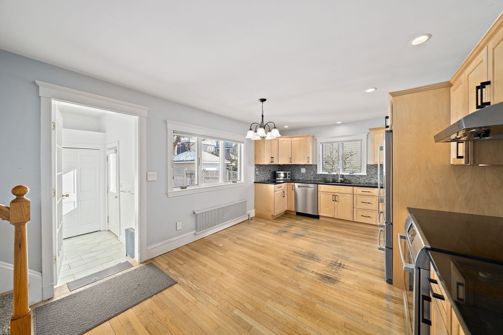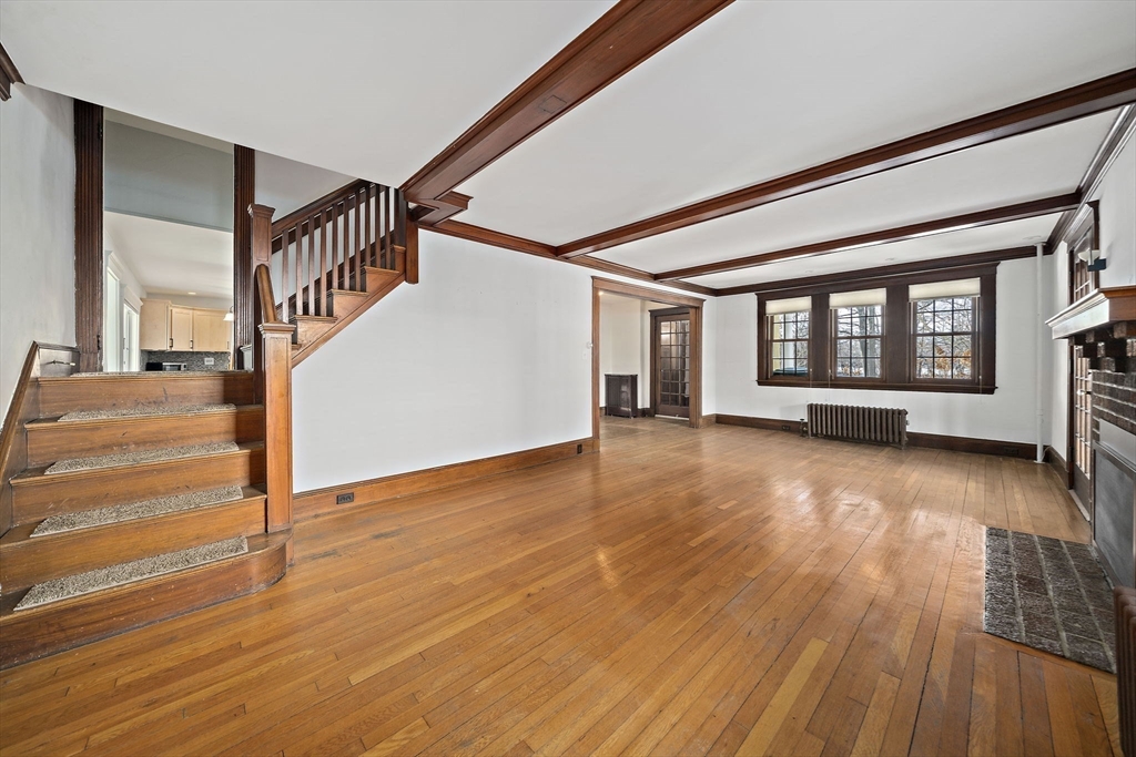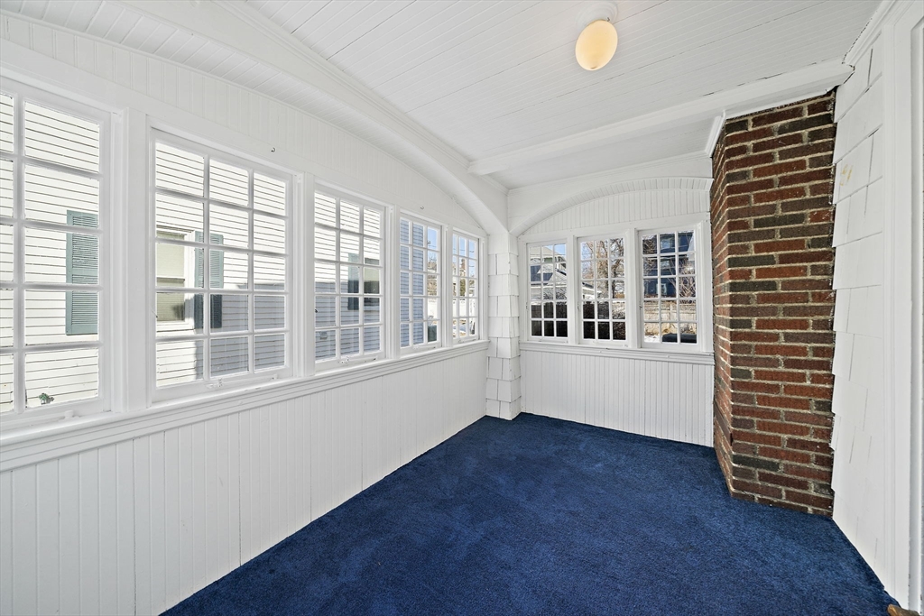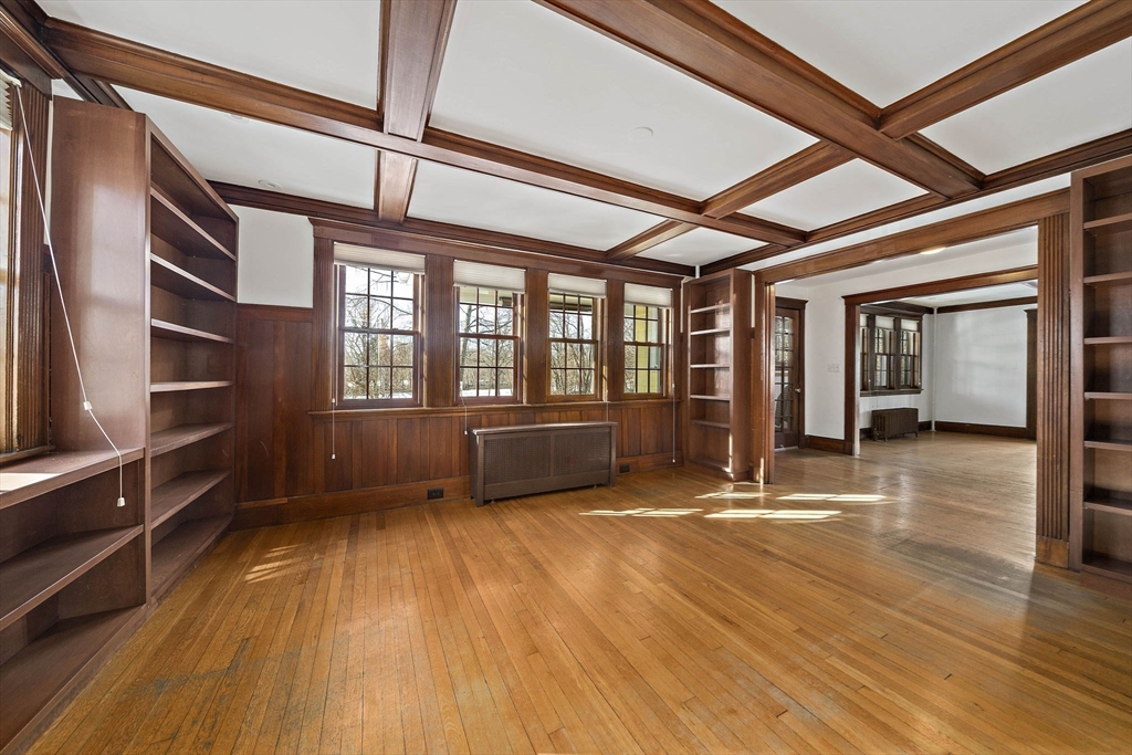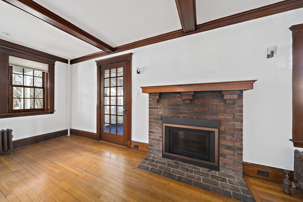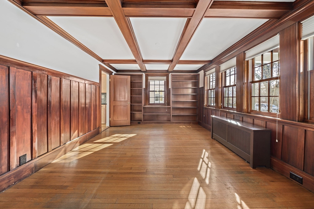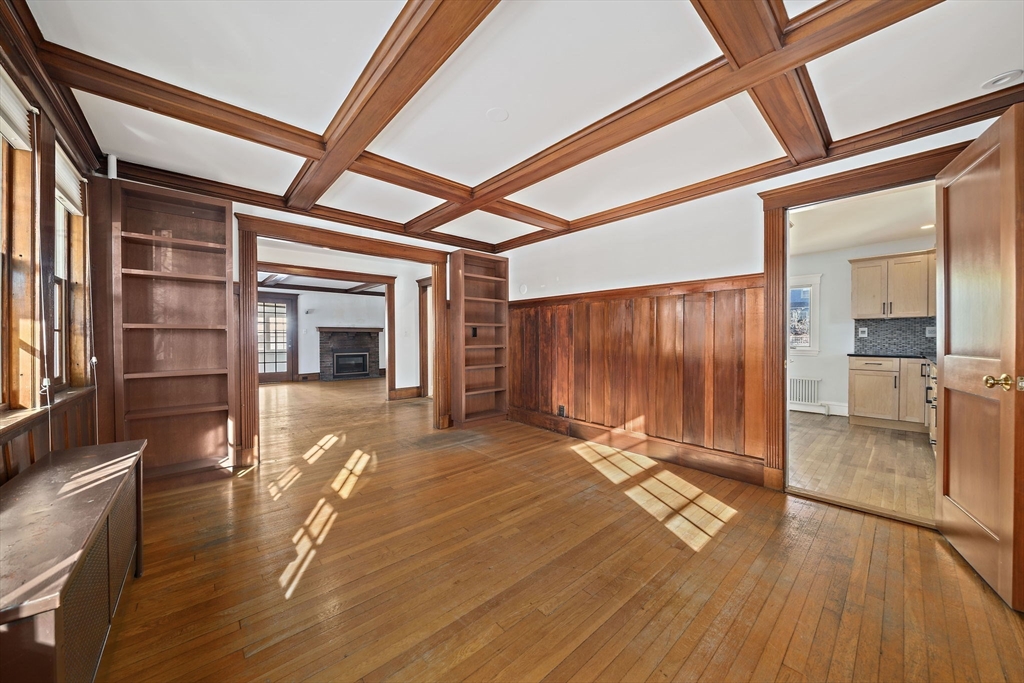 Charm and character fill this center Colonial. The spacious Farmers porch with mahogany decking and center columns is the perfect place to sip your morning coffee while overlooking your neighborhood, the front yard flower beds, and the Mystic River Reservation. Entering the home you are greeted with an open floor plan with a front-to-back living room with gas fireplace and an exquisite home library with coffered ceilings, floor-to-ceiling built-in bookcases, and natural woodwork. The gourmet kitchen has custom cabinetry, a tiled backsplash, stainless steel appliances, and granite countertops. A private first floor office/media room has a mini-split for cooling/heat, and a walk-up attic is ideal for additional storage. The house has central A/C. It is on a side street in the heart of West Medford steps from the Lower Mystic Lake and the Mystic River. The fenced-in back yard, filled with beautiful perennials, offers a peaceful retreat perfect for entertaining.