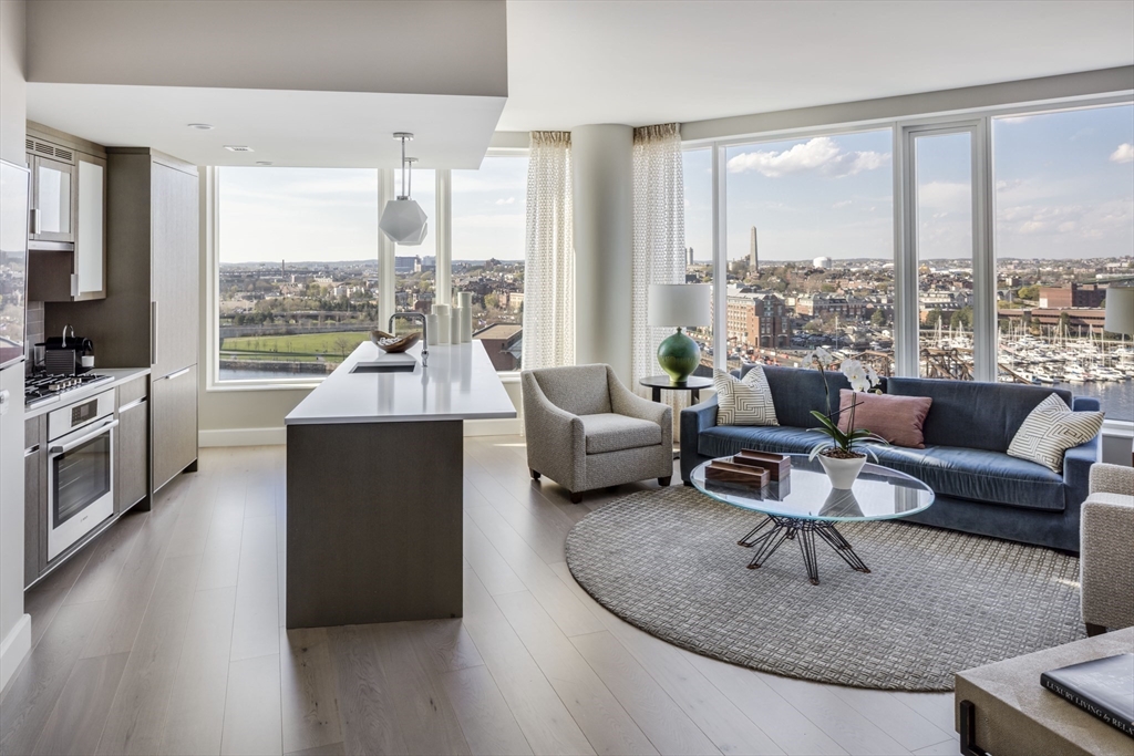 Elegant 2-bedroom, 3-bath residence featuring a thoughtfully designed custom kitchen and dining area with premium Bosch appliances. Wide-plank hardwood floors flow throughout, while the primary suite boasts a luxurious marble bath. Step outside to your private outdoor space and take in captivating views of the Zakim Bridge along with partial harbor views. Expansive windows fill the home with natural light and frame the stunning cityscape. Full-service building amenities include 24-hour concierge and doorman services, fitness center, rooftop terrace with lounge and grilling areas, entertainment lounge with game room and large-screen TVs, playroom, dog spa, and a dedicated social coordinator by Related Beal. Ideally situated adjacent to The Hub on Causeway, with multi-level retail, dining, grocery, and a movie theater just steps away. Convenient access to the Financial District, North End, MGH, and North Station. Two valet parking spaces available for an additional fee.