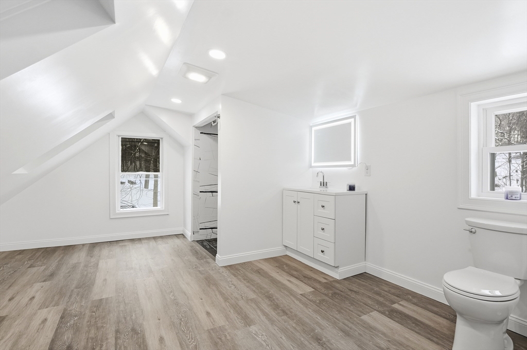 Welcome home! An enclosed front porch leads you into this beautifully updated residence. The sun-filled living room features a picture window and a sliding glass door that opens to the backyard—perfect for indoor-outdoor living. The remodeled kitchen boasts modern white shaker cabinetry, sleek countertops, and recessed lighting, flowing seamlessly into the dining area. A convenient storage room with laundry hookups and a full bath complete the first floor. Upstairs, you’ll find three comfortable bedrooms and a spacious full bathroom highlighted by recessed lighting and skylights. Outside, enjoy a generous fenced-in yard and a detached two-car garage. Don't forget to ask about the many improvements and upgrades. Truly move-in ready—just unpack and enjoy!