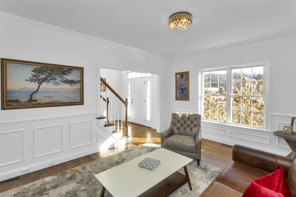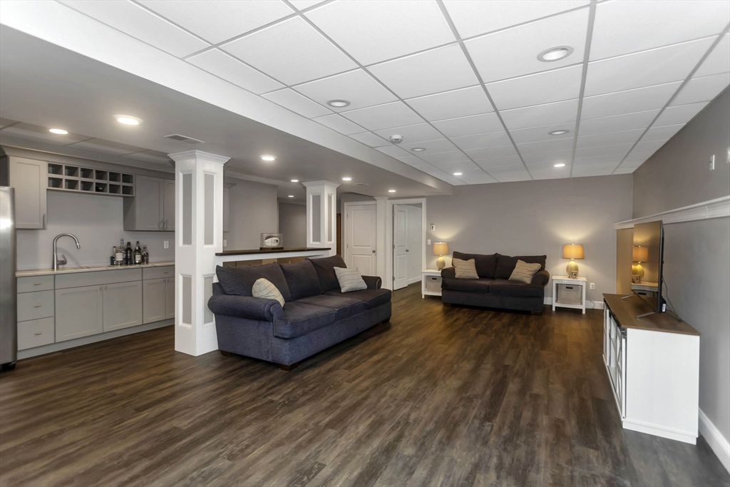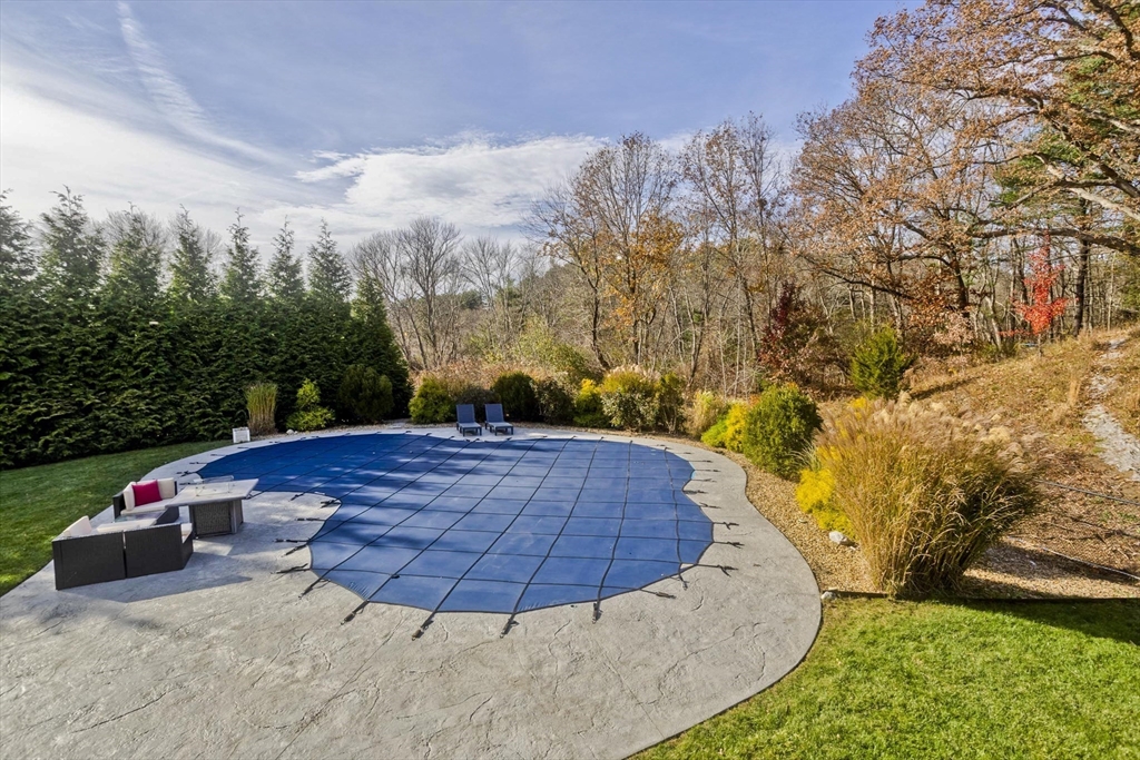 Tucked away on a quiet cul-de-sac, this beautifully maintained property showcases impressive custom amenities and updates. A sunlit 2-story foyer draws you in highlighting the home’s semi-open floor plan. Formal living and dining room are accented by elegant wainscoting while the well-appointed kitchen featuring stainless steel appliances, subway tile backsplash, and center island flows seamlessly to a great room with recessed lighting, fireplace, and decorative door to the rear deck. Upstairs offers 4 generously sized bedrooms, double vanity main bath, and dedicated laundry room with cabinetry and storage. Additionally, the primary boasts five closets, an en suite and private bath with jacuzzi tub and tiled shower. The finished basement adds exceptional living space, featuring a wet bar, full bath with glass-enclosed tile shower and custom sauna. Outside, the private backyard with a heated salt water in-ground pool sets the tone for enjoyment and relaxation with family and friends.
