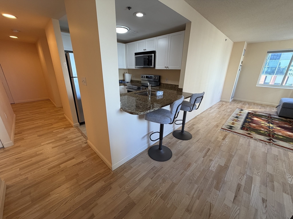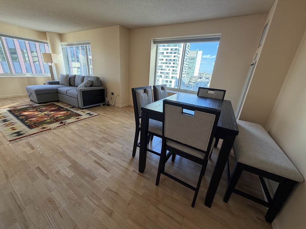 Spacious corner two bedroom unit with wood floors and updated Kitchen. Wood floors throughout! Kitchen has updated cabinets, stainless appliances and granite counters. Two full upgraded bathrooms! New custom blinds! Price includes one valet parking. Washer/dryer in unit. Central air. Rent includes one valet parking! Building amenities include 24/7 concierge and valet parking,on-site property management,gym with lap pool and hot tub,business center,movie room,gathering and event room,complimentary shuttle service,laundry dryclean pick up and drop off,on site market. Beautiful North Point Park in front of the building. Steps to Cambridge Crossing, Charles River,Galleria Mall shops and restaurants,T, MGH, MIT. Short walk to Charlestown, Wholefoods and N.End via walk bridge.