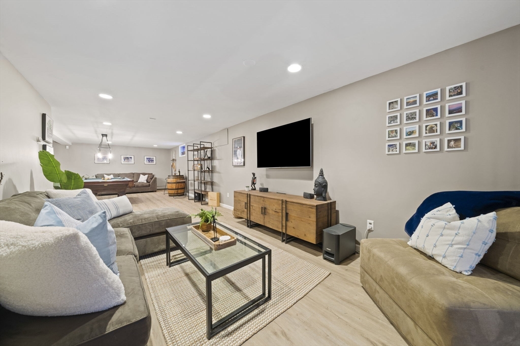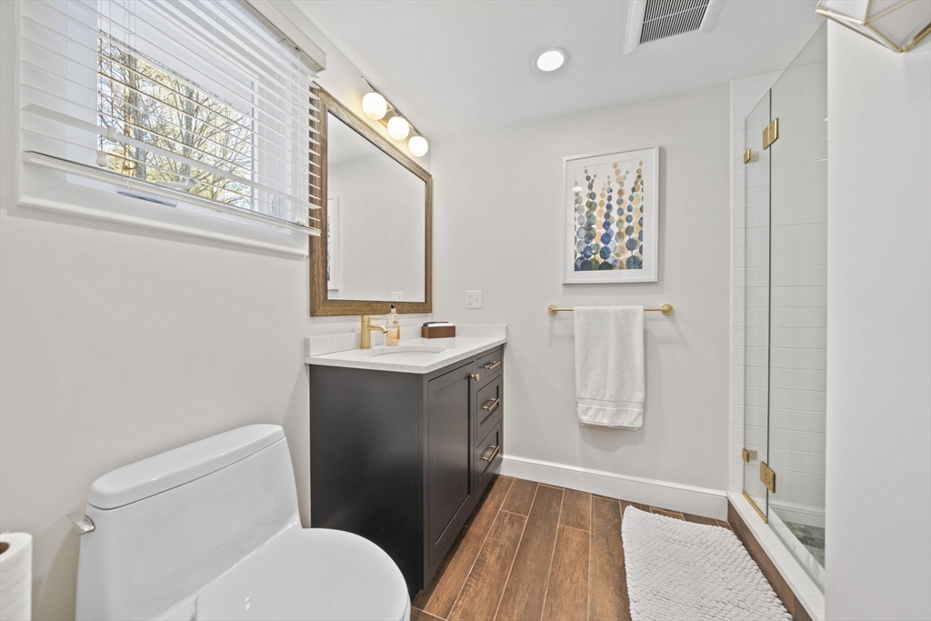Charmingly set on the much-loved Mast Hill cul-de-sac, this inviting home is surrounded by mature trees and a serene, private setting. Designed for both everyday living and effortless entertaining, the oversized eat-in kitchen features a large granite island with seating, Bosch appliances, double wall ovens, pantry and laundry area. Direct access to oversized covered patio and fenced in back yard. The kitchen flows seamlessly to the DR, which shares an airy, open layout with the cathedral ceiling sunroom and LR with slate wood-burning fireplace. The oversized windows wrap the entire space and flood the areas with natural light while framing picturesque outdoor views. All four bedrooms feature hdwd floors, and the large primary suite has a full bath, his and hers closets and lots of natural sunlight. The finished LL has exceptional flexibility with a spacious family room, recreation area, office, exercise room + workshop. Move right in and enjoy all that Hingham has to offer!!