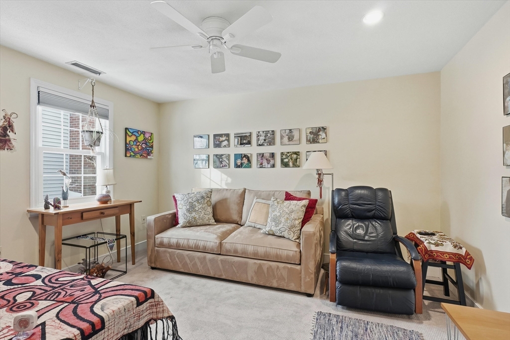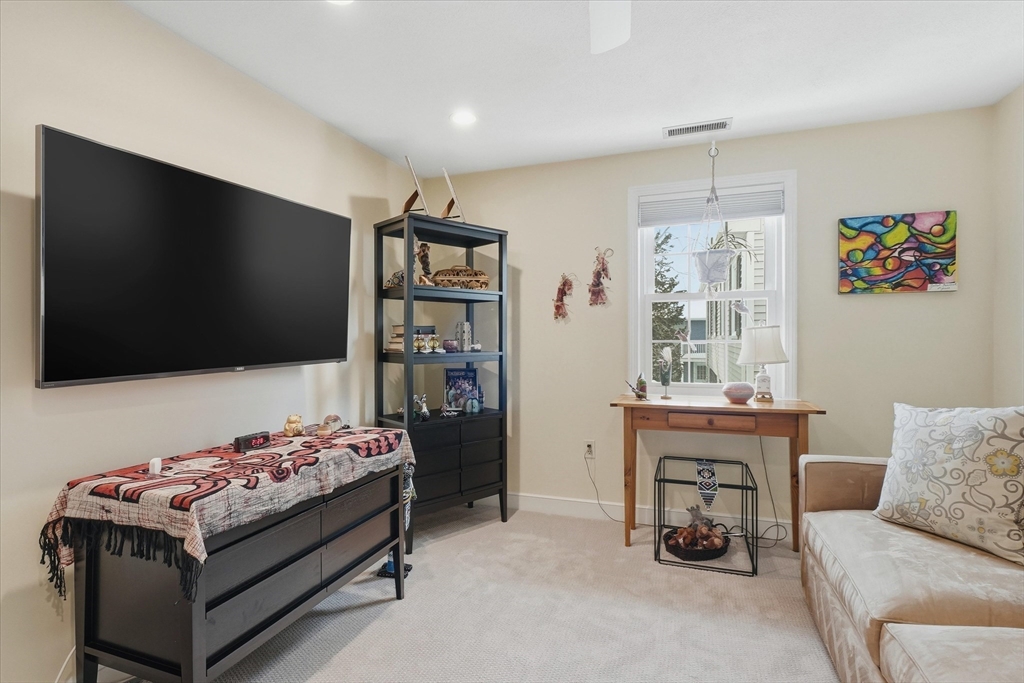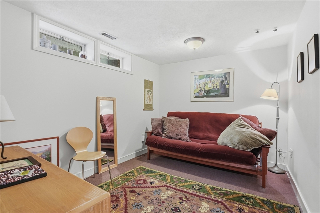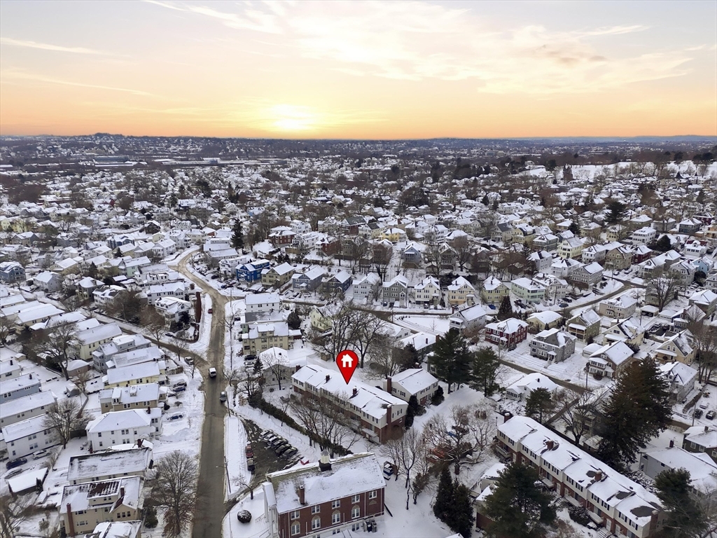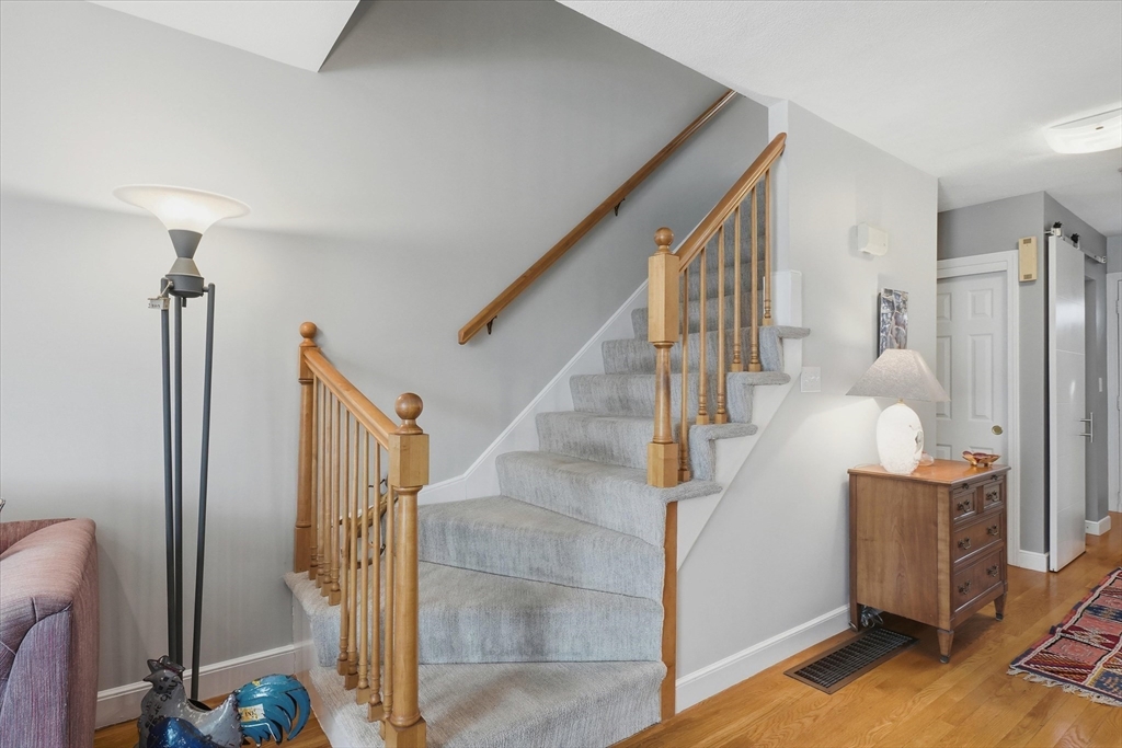Prime location meets move-in perfection in this stunning townhouse. On the 73-bus line, under 10 minutes from Harvard Square, close to the Mass Pike, Route 2, Watertown Square, Belmont Center, and a mile from Arsenal Yards. The open first floor flows seamlessly from dining to living, anchored by a working fireplace that turns ordinary evenings into occasions. The eat-in kitchen’s bay window allows an abundance of light while crafted style sets the tone for the entire home. Upstairs, the primary bedroom offers unusual bounty—generous closets, a built-in office, and an en-suite bath. A second bedroom and full bath complete the picture. The under-unit garage means you'll never shovel your car out again, while ample guest parking means hosting is effortless. Summer brings the beautiful common green directly in front—your outdoor living room. As a middle unit with an energy-efficient heat pump, you'll stay comfortable year-round. These rarely surface—claim it before someone else does.