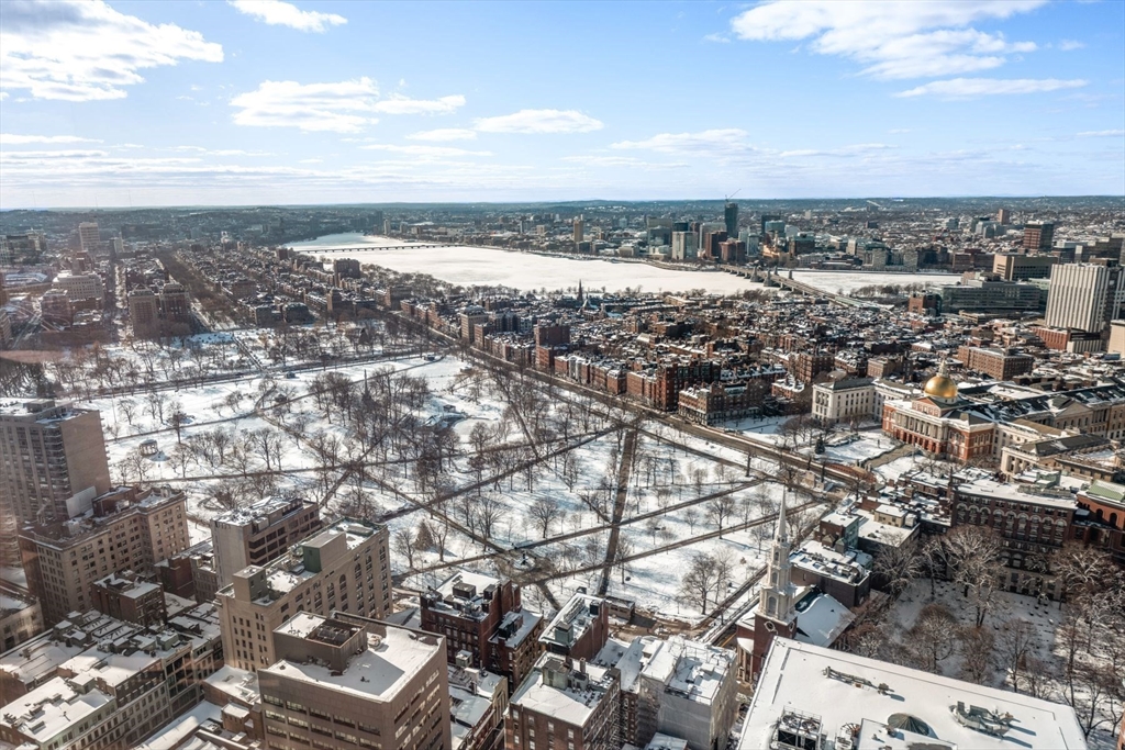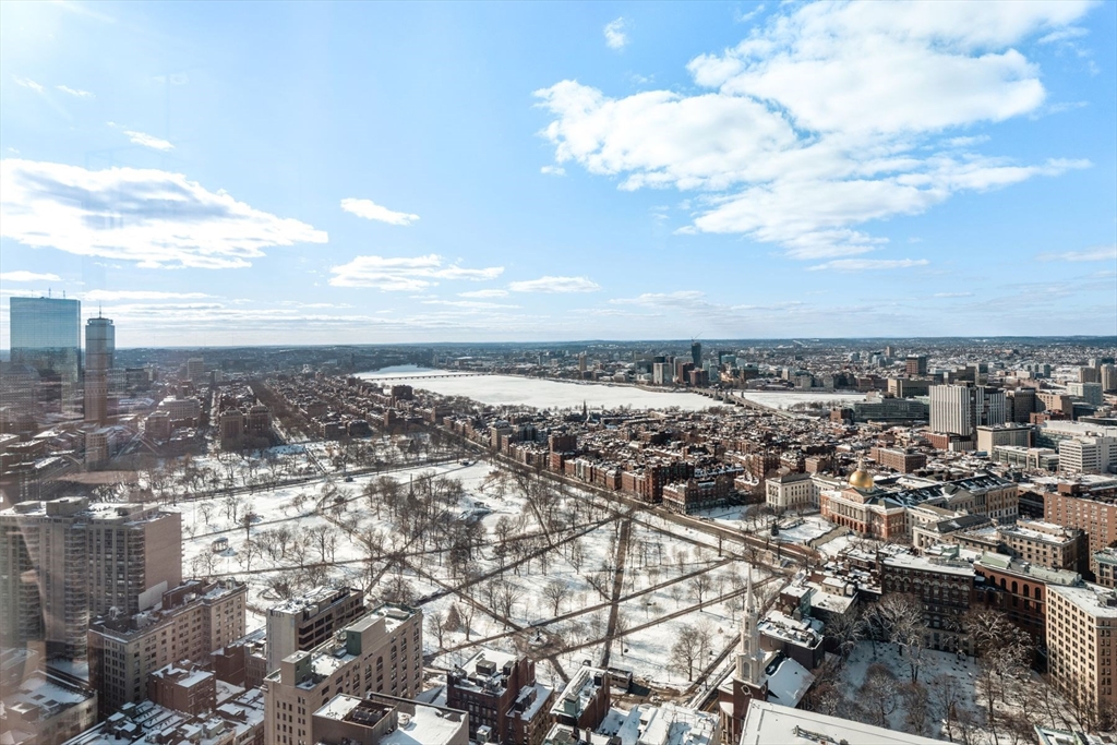 Millennium Tower Residences. Spectacular Southwest corner 3 bedroom (3,172 SF) premier unit in the Grand Residences on the 50th floor with amazing Panoramic views of the Charles River, Boston Common, Public Garden & Back Bay Skyline. This highly coveted floor plan features expansive living room with fireplace, soaring ceilings, over-sized windows, wide plank oak floors and open style dining room with amazing views. Separate eat in kitchen with family room & dining area overlooking the Park. Grand Master bedroom suite with Park views and white marble master baths and custom walk in closets. Spacious 2nd & 3rd bedrooms with en-suite baths. Unit has many designer upgrades. The Residences feature 5-star Services, including Concierge, Doormen, Valet Parking, and exclusive two-story Residence only Club with lounge, dining room, theatre, billiard room, library, golf simulator, function room, outdoor terrace, Spa, indoor pool & state of the art fitness center. Includes 2 valet garage parking.
