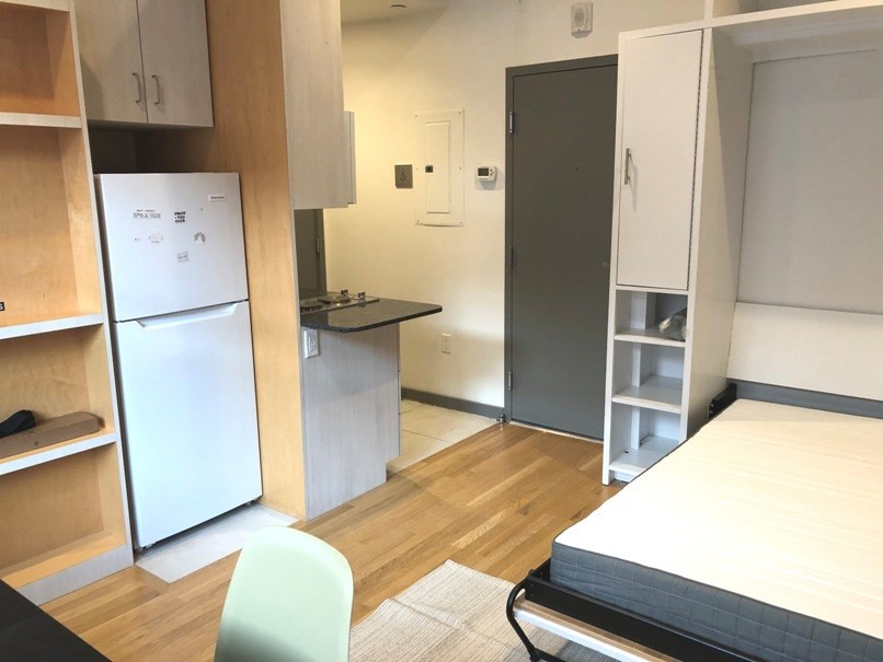 Micro Studio with fantastic views of the State House. Top Floor Front Facing Unit! This apartment has 2 stove top burners and a microwave. Granite Counters. A Murphy Bed (cool). Elevator and Laundry in Building. Central A/C. Priced at $2300. Flexible Lease terms. This apartment can be furnished or un-furnished.