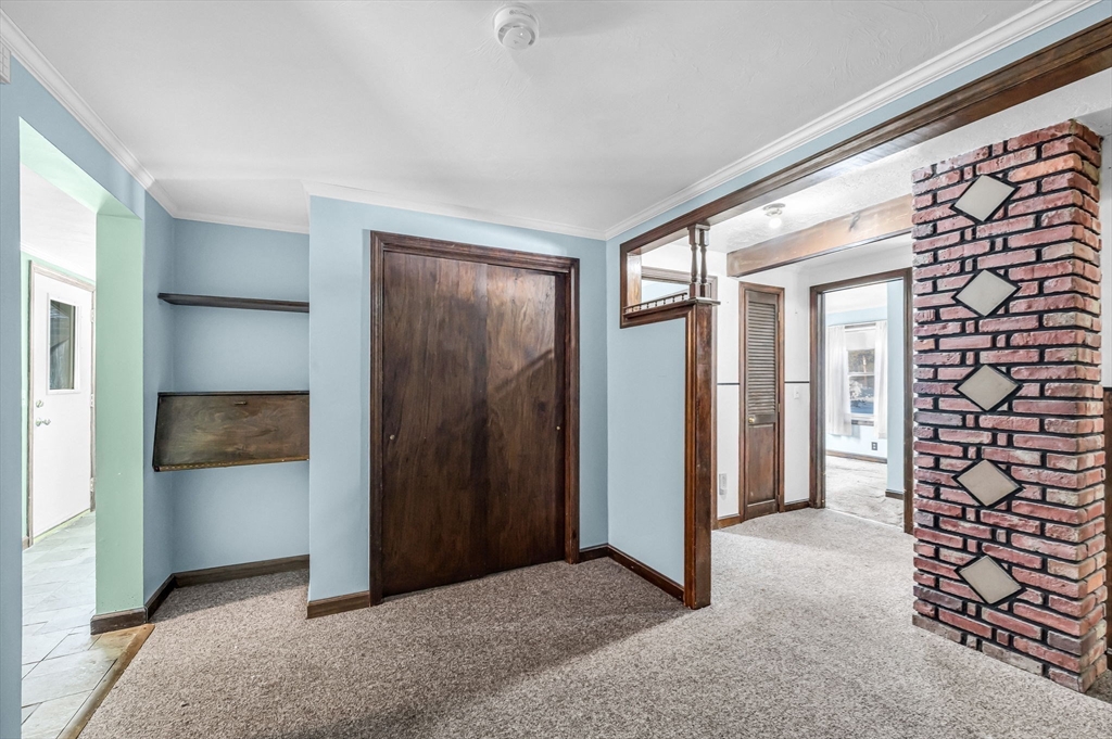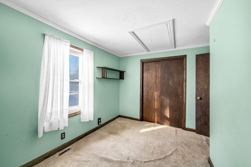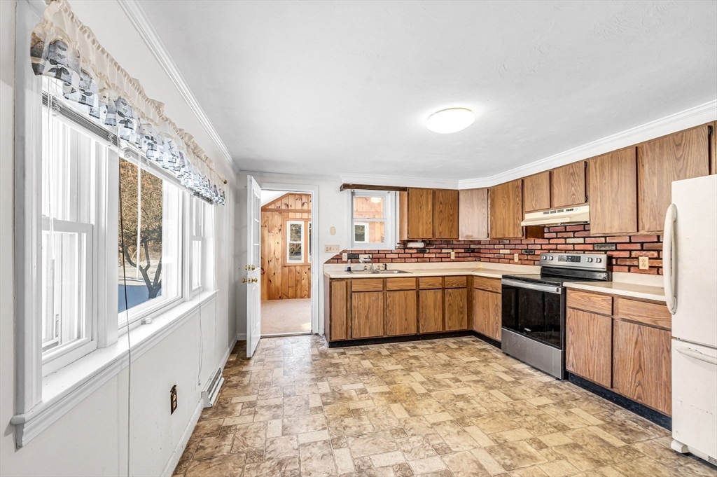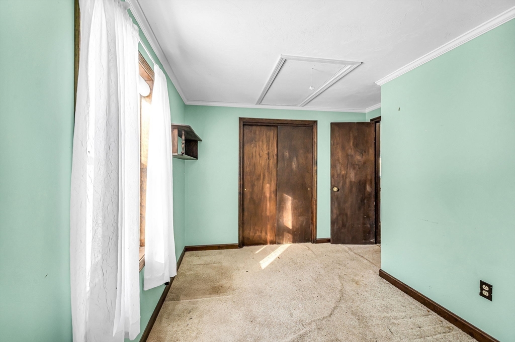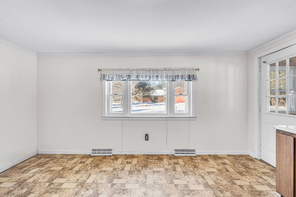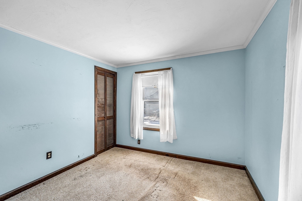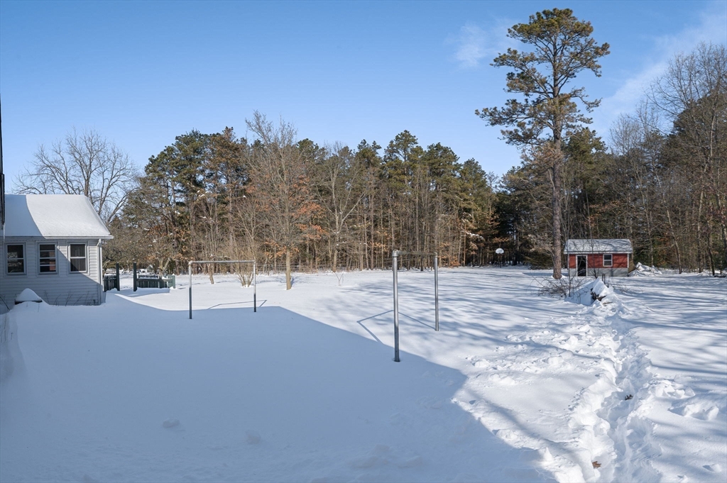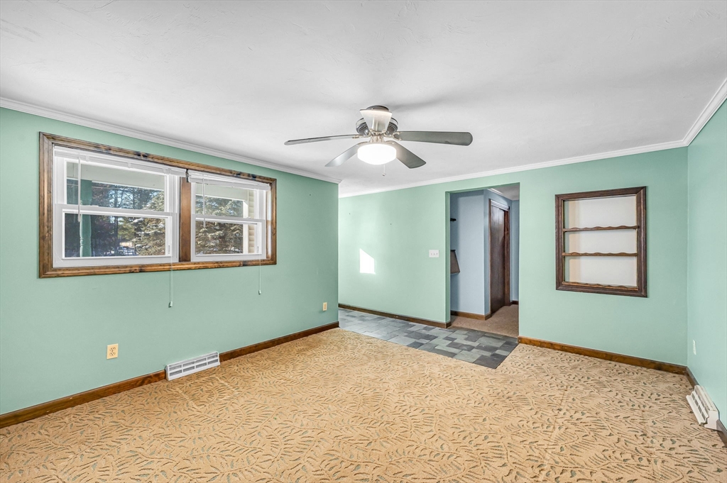 Set on over two acres, this ranch offers space, privacy, and plenty of potential for buyers looking to make a home their own. A little sweat equity will go a long way for the buyer with creative ideas. Inside, the large eat-in kitchen provides a generous gathering space, and the three-season porch overlooks the backyard, adding a bright, relaxing spot to enjoy the property. Easy one-floor living can be yours with three bedrooms and large bathroom on the first floor. The basement workshop is perfect for projects and storage, and it’s complemented by a wood-burning stove that adds warmth. There’s also laundry on both the first floor and in the basement, offering flexibility for daily living. An additional shed outside provides even more storage. Just 3 miles from Hampden Pond and 5 miles from HCC. Close to I 91 and very close to Barnes Airforce Base. A versatile property with acreage, a classic ranch footprint, and room to create something special.
