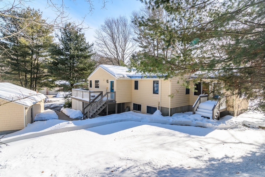 Looking for a charming, updated home surrounded by nature & convenience of amenities? Look no further than 2 Darby Ct! This meticulously cared for, renovated & expanded bungalow is glowing w/custom touches, space & thoughtful design from the moment you get to the door! Enjoy a spacious & sun-filled open floor plan starting w/an inviting living room centered around the spectacular stone wood burning fireplace w/built-ins. The stunning, updated kitchen boasts a huge walk-in pantry, built-in desk space, granite counter tops, ss appliances & adjacent full-sized dining area. To the rear of the home you will find an updated full bath & all bedrooms/office. Gleaming hardwoods & custom blinds throughout the first floor. The partially finished lower level has a spacious, yet cozy family room w/walk-out access, full bath, laundry & an abundance of storage! Large two car garage & parking for cars, boat, kayaks etc. Less than 2 miles from Cochituate State Park, rail trail, shopping & major routes!