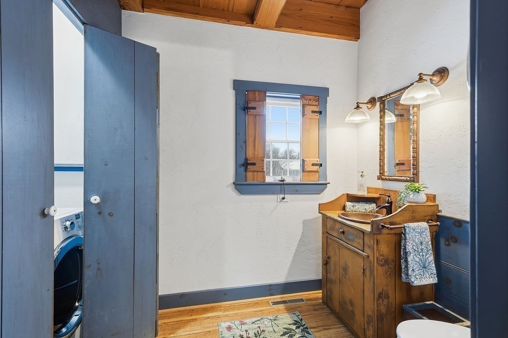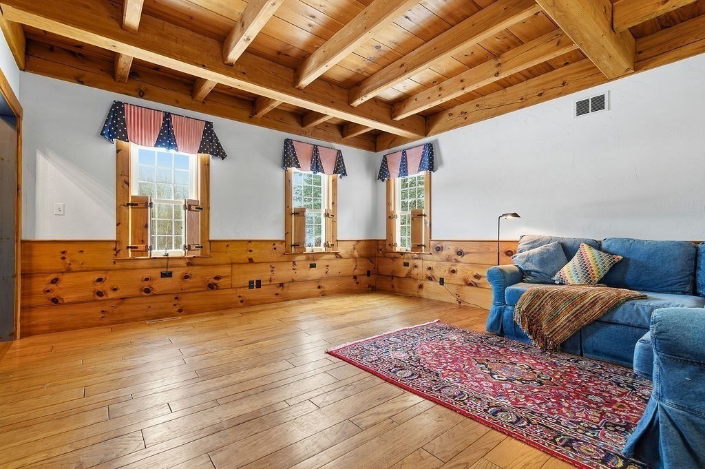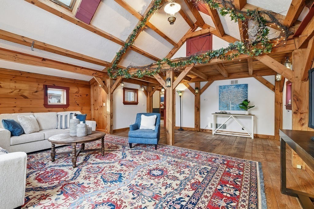 Welcome Home ~ to a Quintessential Replica Post & Beam constructed Colonial featuring beautiful modern updates ~ How thoughtfully reimagined ~ An expansive first floor living area featuring a kitchen updated two years ago with quartz and premium appliances~wall ovens are voice activated~leading into a walk-in pantry, dual hall closets and half bath with laundry ~ the open Dining Sitting area which opens to the Scenic Deck ~ an expansive Family room with a Palladian Window & Loft. Stunning foyers on both floors ~ Upstairs features three large bedrooms and bath ~ The unfinished walkout lower level offers endless possibilities with its own Driveway and Entrance ~ plumbing has been roughed in for a bathroom ~ This Spectacular home features meticulous landscaping, stonewalls, gazebo, koi pond and walkout access to Pond Meadow Park ~ a backyard oasis ~ (numerous updates, sheet will be available at OH) Location, Location on a desirable cul-de-sac close to many options ~ TRULY ONE-OF-A-KIND ~