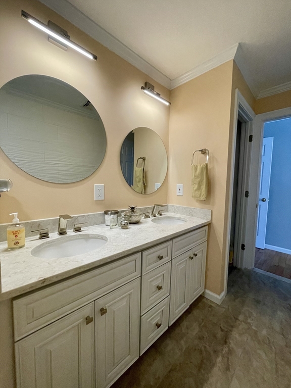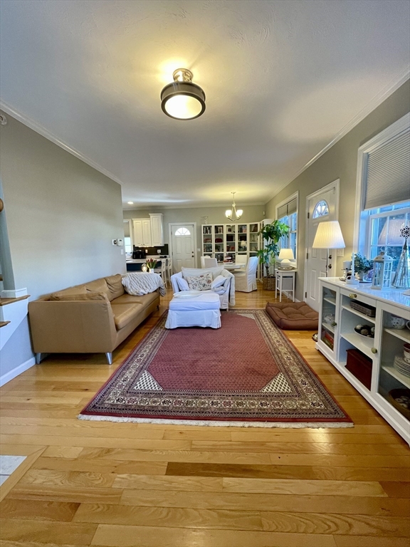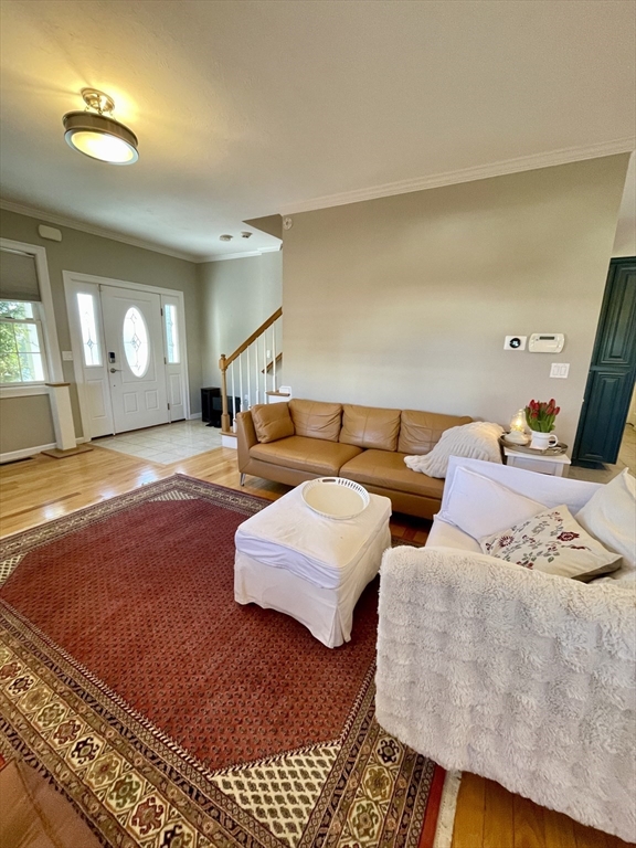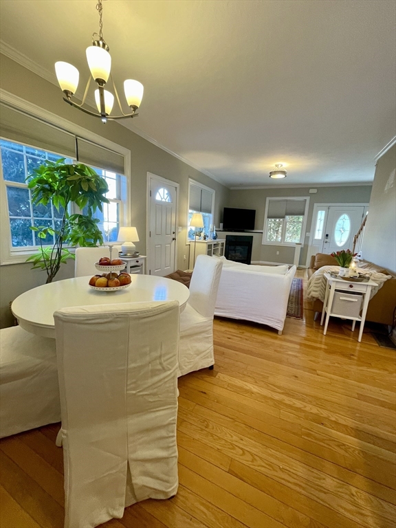 Modern 5BD/2.5BTH townhouse in Newton Centre offering four levels of living with hardwood floors throughout. The gourmet kitchen features stainless steel appliances, granite countertops, modern cabinetry, breakfast bar, and gas cooking. Spacious living and dining area includes a fireplace and 10-foot ceilings. Main-level half bath for convenience. Primary suite boasts private balcony, two large closets, and marble full bath with double vanities. Three additional bedrooms with generous closet space, in-unit laundry, and second full bath. Third-floor office or study with skylight, built-in desks, and large windows overlooking tree-lined views. Finished family room ideal as flex space or fifth bedroom. Energy-efficient systems and central A/C. Two-car garage plus off-street parking, with direct access to patio and garden area. Walk to Chestnut Hill Square, Chestnut Hill Mall, Life Time Fitness, with easy highway access and quick commute to Boston, Cambridge, and surrounding areas.