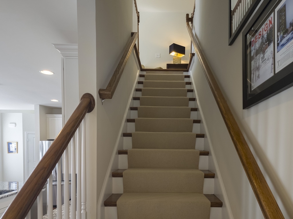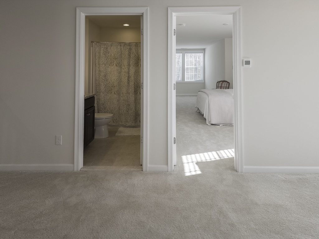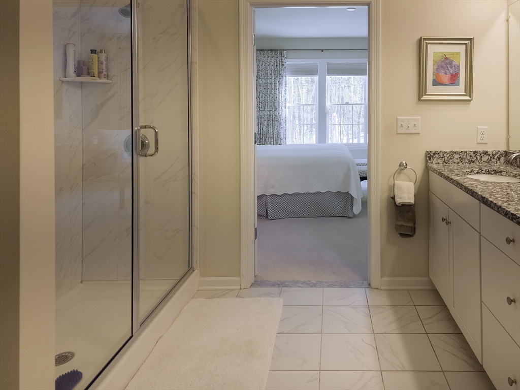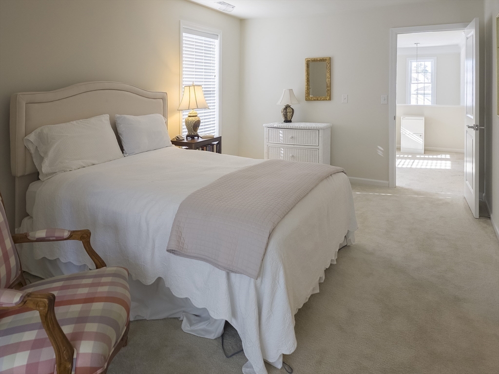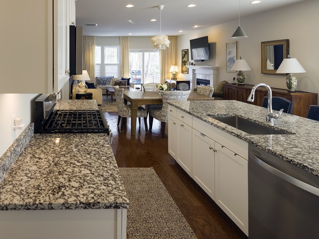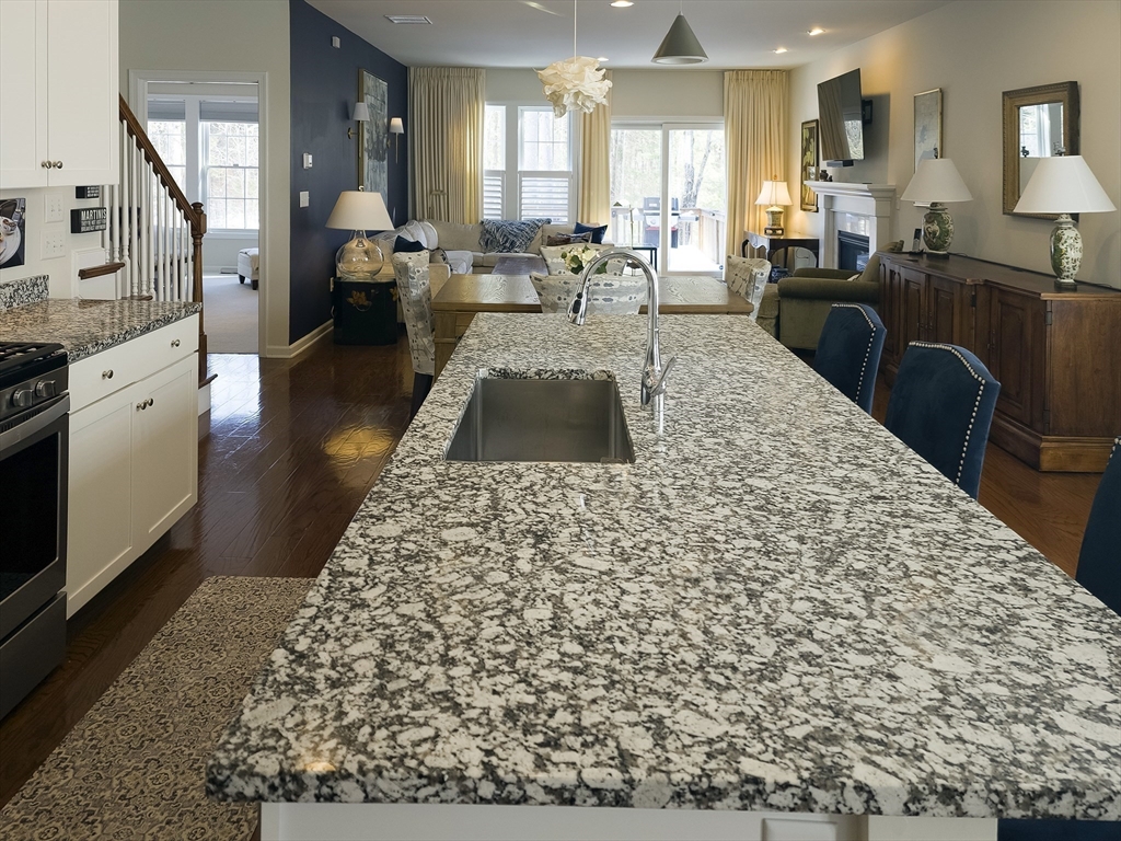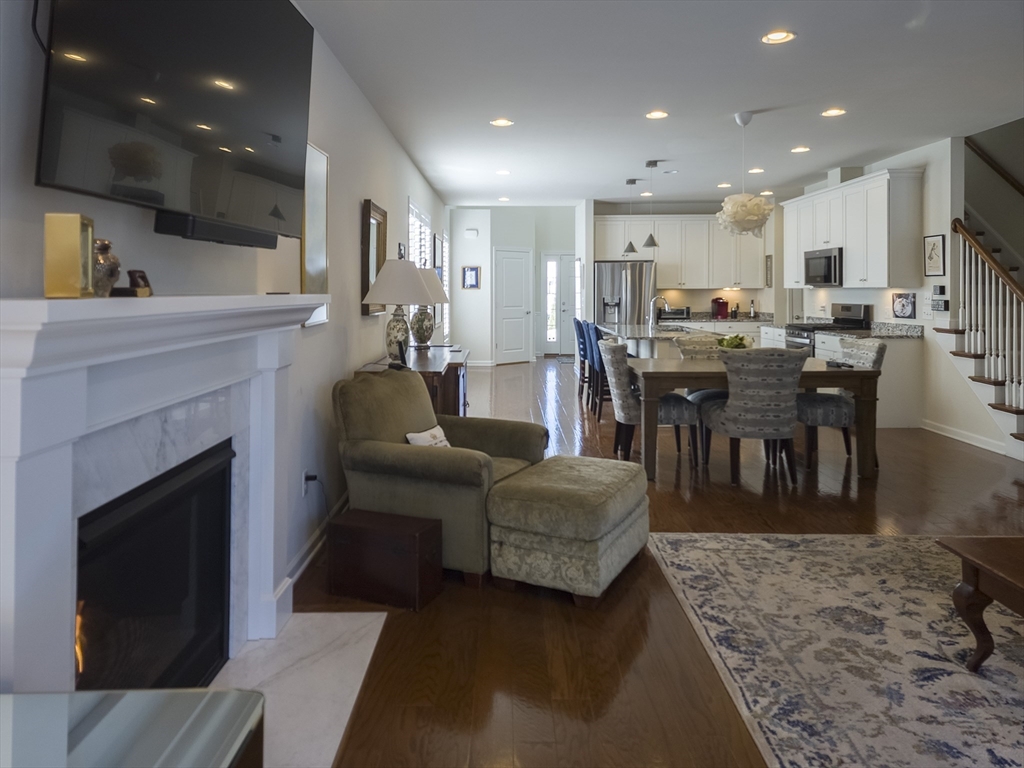 Exceptional two-story end unit in Brooksmont of Holliston, a premier 55+ Active Adult Community. This well-maintained Sorrento model offers an open floor plan with hardwood floors, soaring ceilings, and a marble-surround gas fireplace. A slider opens to a private composite deck with tranquil wooded views. The kitchen features custom cabinetry with under-cabinet lighting, granite countertops, stainless steel appliances, pantry storage, and a generous center island. The first-floor primary suite provides effortless main-level living with a walk-in closet and full bath. Upstairs, a spacious loft and private guest suite with a full bath offer flexibility for guests or home office space. Additional features include a two-car attached garage with direct entry to a mudroom and main-level laundry. The insulated full basement offers excellent storage and future expansion potential. Ideally located near shopping, dining, and major routes. OH SATURDAY & SUNDAY FROM 12-1:30 PM