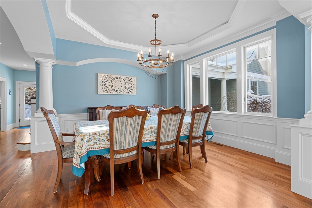 This young, custom built Colonial offers the perfect blend of classic design and modern living in a highly convenient south side location near top schools. Thoughtfully designed for today's lifestyle, the home features 4 spacious bedrooms plus multiple dedicated office and flexible spaces - ideal for remote work, study, or multi-generational needs. At the heart of the home, the open kitchen flows effortlessly into casual dining and a dramatic, vaulted double-height family room filled with natural light. Oversized windows overlook the expansive backyard and inviting hardscape with a firepit, creating an ideal setting for entertaining or relaxing year-round. The second floor features four well-appointed bedrooms along with a large office or flexible space over the garages, perfect as a home office, playroom or media room. The finished lower level offers high ceilings and exceptional bonus space,including a bar area, full bathroom, expansive game room,exercise room and additional storage.