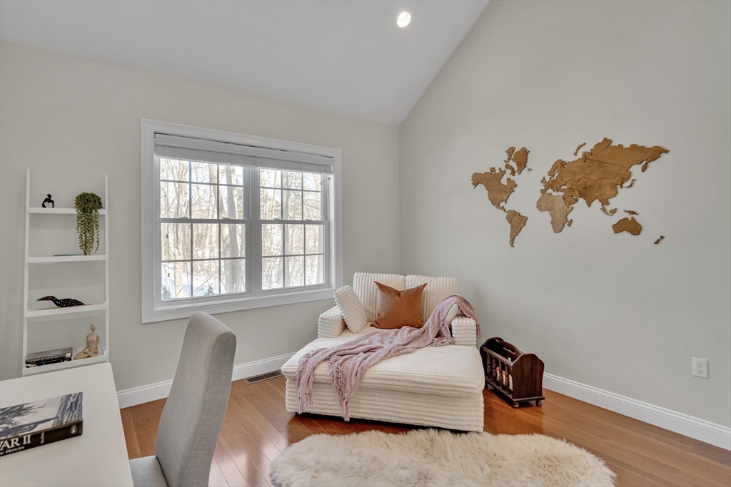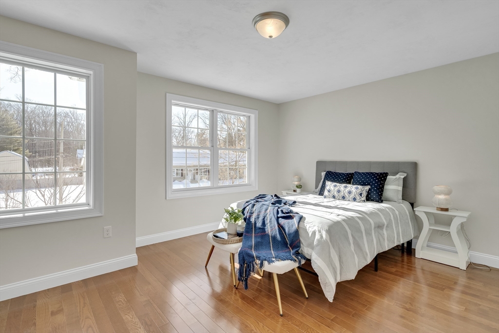 Welcome to this inviting 2017 Colonial, set on a 0.37-acre level, manicured lot on a quiet dead-end street. Just 0.3mile to Long Pond with playground, beach, and boat rentals. A charming farmer’s porch opens to a dramatic family room with soaring 17-ft ceilings, where a transom-topped double slider leads to a custom built patio featuring a propane fire pit and cafe lights— a perfect outdoor retreat oasis. The eat-in kitchen offers white cabinetry, granite countertops, & stainless steel appliances. A first-floor bedroom/home office with full bath provides ideal flexibility for 1st time buyers, downsizers, or multigenerational living. Upstairs includes two sunny south-facing bedrooms, walk-in closet, a spacious loft, full bath, and laundry. The finished basement with daylight windows offers versatile bonus space. 0.7mile to Shaker Lane elementary school. Close to the Common and The Point for shops and restaurants, Oak Hill Trail, plus easy access to the MBTA commuter rail and Rt. 495&225