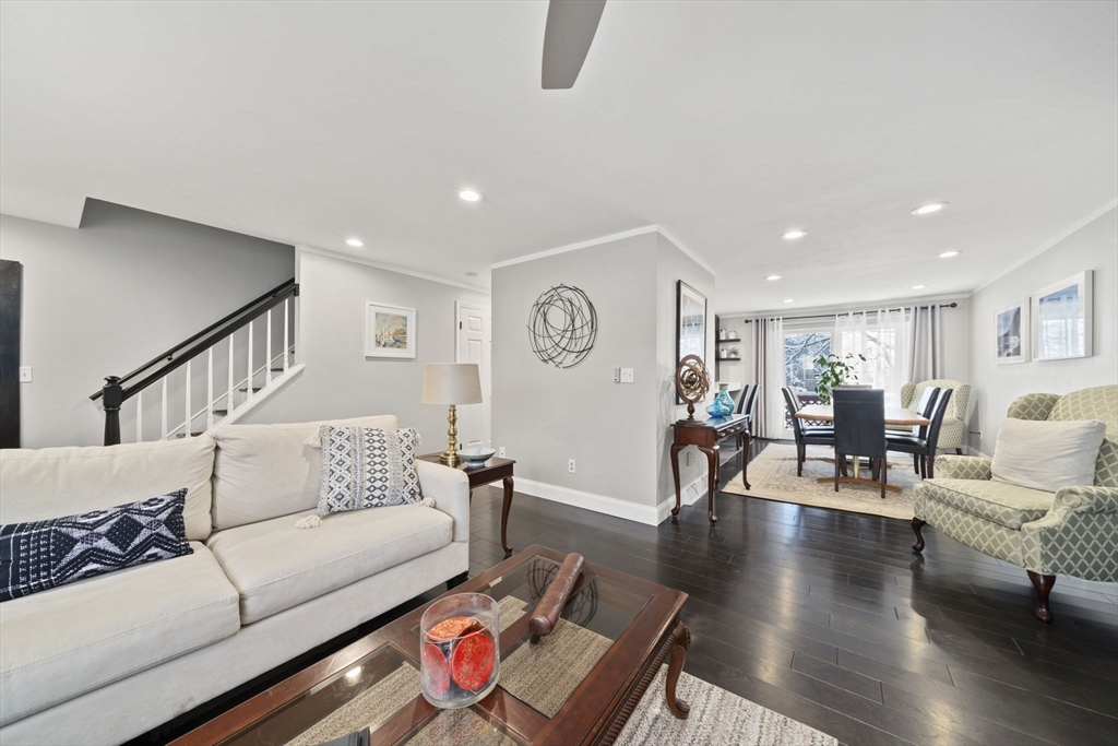 Step inside this Meticulously Maintained, Updated from Top to Bottom, 2 bedroom, 2.5 bath home and be greeted by an inviting open floor plan featuring beautiful hardwood flooring throughout, lots of natural light, fabulous kitchen with 2 draw dishwasher for large and small loads, motion sensor faucet, smart microwave, quartz counters, stainless appliances and a multi person peninsula. Spacious living room, dining room with slider that brings you to your deck overlooking landscaped grounds. The second level has an oversized primary suite complete with private bath, lots of closet space, plus, another generous size bedroom, double closets and full bath complete this level. Additional highlights include a partially finished lower level, in unit laundry, central a/c and ample storage space. Take a look at the attached virtual tour. The showings will start at the Open House Saturday, February 7th from 11:30-1:00
