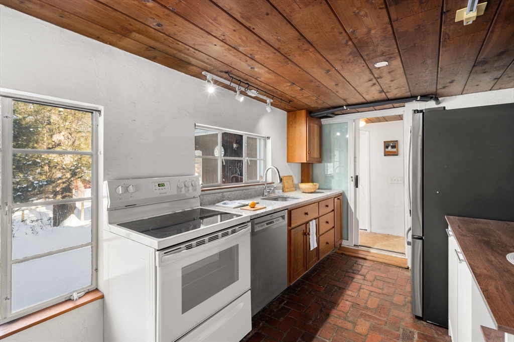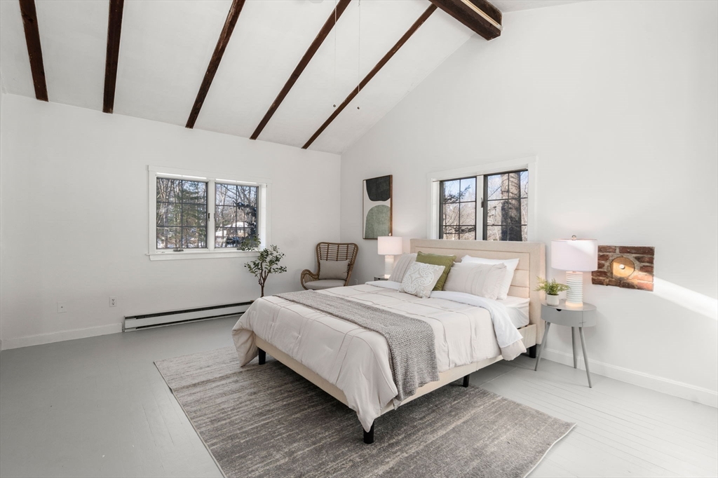 Rarely available opportunity to own a lovely sun-filled single family home on just under one full acre of land in a pristine location. Come see this absolutely idyllic Chalet style deck house custom built by renowned Blacksmith Ted Tucker. This bright and sunny home has the feel of being secluded in northern Vermont while still being just minutes to everything. Enjoy absolute solitutude while sitting on the spacious back deck overlooking your expansive yard and private garden. Complete with top to bottom living room windows, cathedral ceilings, wood burning fireplace, knotty pine, exposed beams and more. Two full baths, second floor laundry. New roof(2023), new electric heat pump and central AC(2023) and updated electric with new 200amp panel(2023). First Showings at Open Houses Saturday 2/7 11:30am-1pm amd Sunday 2/8 11:30am-1pm.