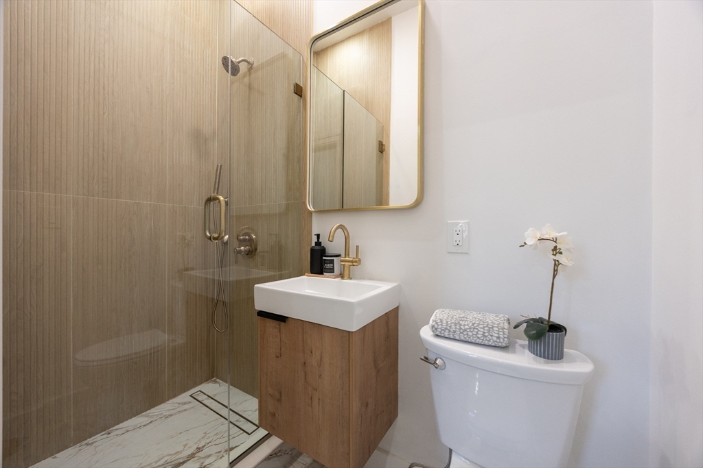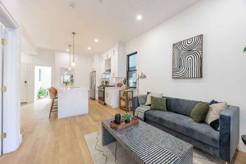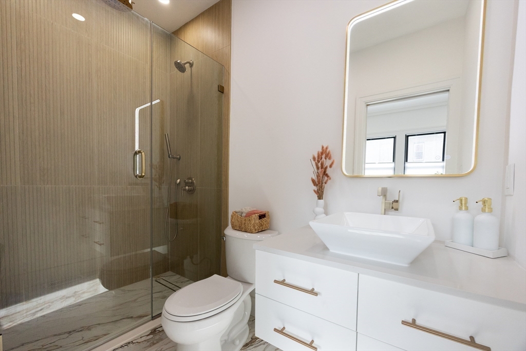 Exceptional new construction in the heart of East Boston! This is the last available unit in the high-end development. The home welcomes you with a sleek, modern kitchen featuring ss appliances, quartz countertops, and custom cabinetry, seamlessly opening to the living area and an oversized private deck—perfect for indoor-outdoor living. The layout offers two generously sized bedrooms plus a versatile third room ideal for a bedroom, home office, or guest space. With three full bathrooms and three outdoor areas including an exclusive oversized backyard, this residence is truly a rare find. The lower level provides flexible space, well-suited for a family room, media room, or additional entertaining area. Ideally located just three blocks from the East Boston Greenway, a six-minute walk to the Airport T station, seven minutes to East Boston’s largest supermarket (Shaw’s),and minutes from Logan Airport and major highways, this home combines modern luxury with unbeatable convenience