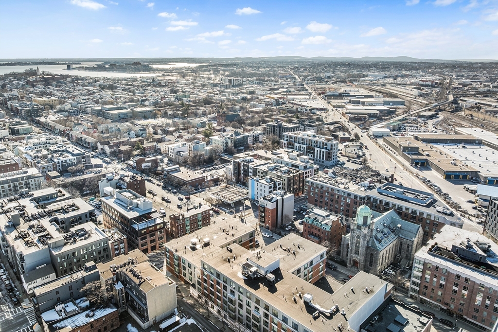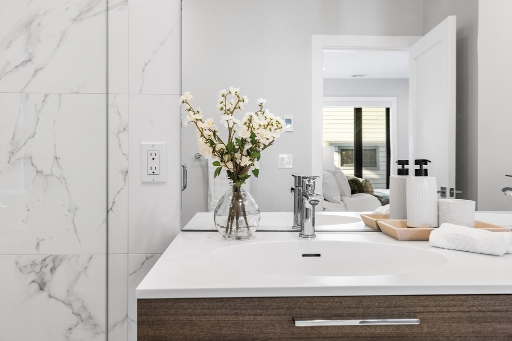 Custom-designed, 4th flr condo built in 2018. Offering luxury city lifestyle. 2 beds, 2 baths & garage parking in smart elevator building. Sleek Scavolini kitchen features Thermador stainless steel appliances, an abundance of hidden outlets, cabinet-front frig & dw, large quartz island w waterfall edge and walls of windows that flood the space w natural light- open, airy space throughout. Both bedrooms are enhanced w custom-built closets, while spa-inspired baths showcase floating vanities and radiant heated floor in the en-suite primary bath. In-unit laundry, tankless water heater and Smart home technology w Sonos audio system, Nest thermostat, custom Lutron electronic shades, video intercom & key fob entry. Step outside to your private 70-sq-ft balcony—perfect for morning coffees & evening unwinding. Professionally managed association with garage parking set in a prime South Boston location around the corner from the Broadway T, and minutes to South End, Seaport, Downtown & highways.