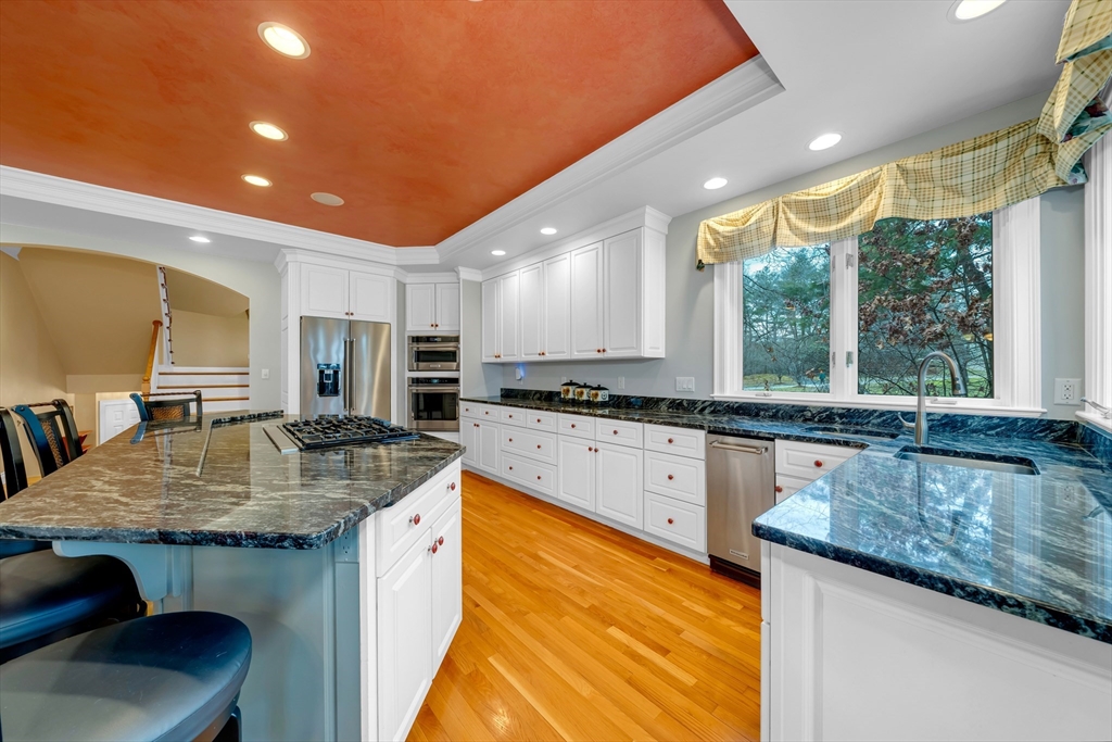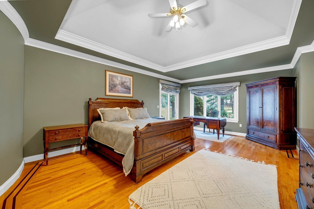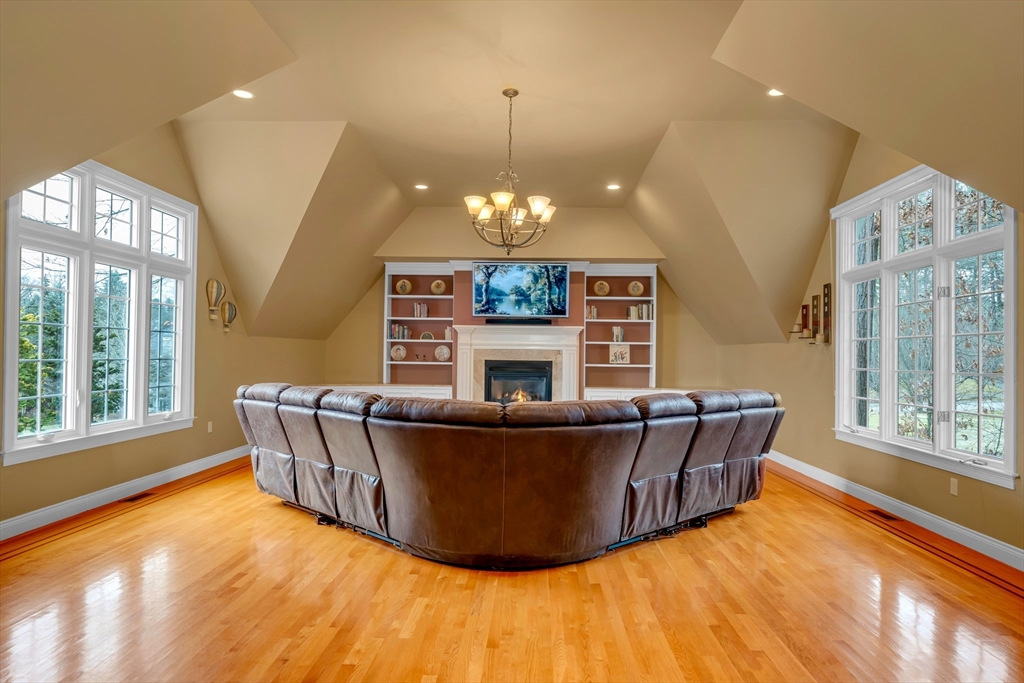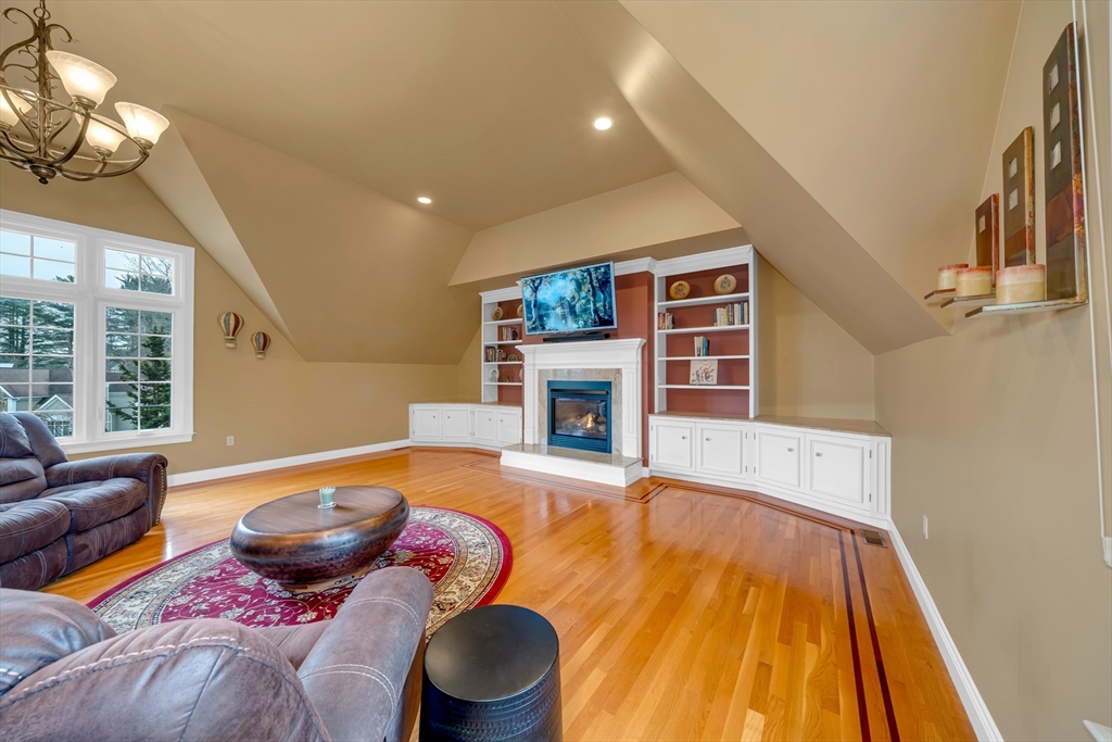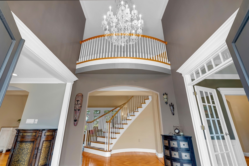 EXPERIENCE ELEGANT COUNTRY CLUB LIVING IN THIS STUNNING GOLF COURSE COLONIAL WITH FABULOUS VIEWS! Set in one of Andover’s most desirable neighborhoods, this impressive home offers approx. 6,597 sq ft with 5 bedrooms, 4.5 baths, and a layout ideal for entertaining and everyday living. The sun-filled first floor features hardwood floors, a fireplaced living room, formal dining room with tray ceiling, and a private home office with French doors. The eat-in kitchen includes a center island, fireplace, and updated appliances. A first-floor primary suite offers tray ceilings, walk-in closet, and a spa-like bath. Upstairs are spacious bedrooms, a bonus room, and laundry. The finished lower level provides flexible space with media and exercise rooms. Recent updates include a new roof, newer windows, and kitchen appliances. Additional highlights include a 3-car garage, central air, and a location convenient to schools, shopping, and highways. DON’T MISS THIS PREMIER GOLF COURSE HOME IN ANDOVER!