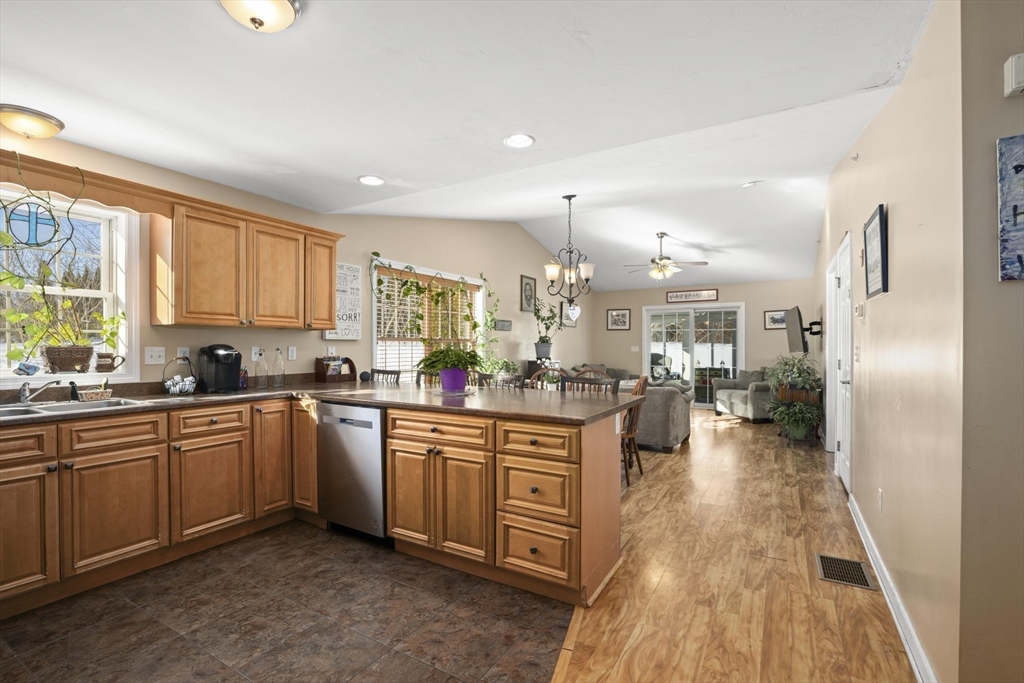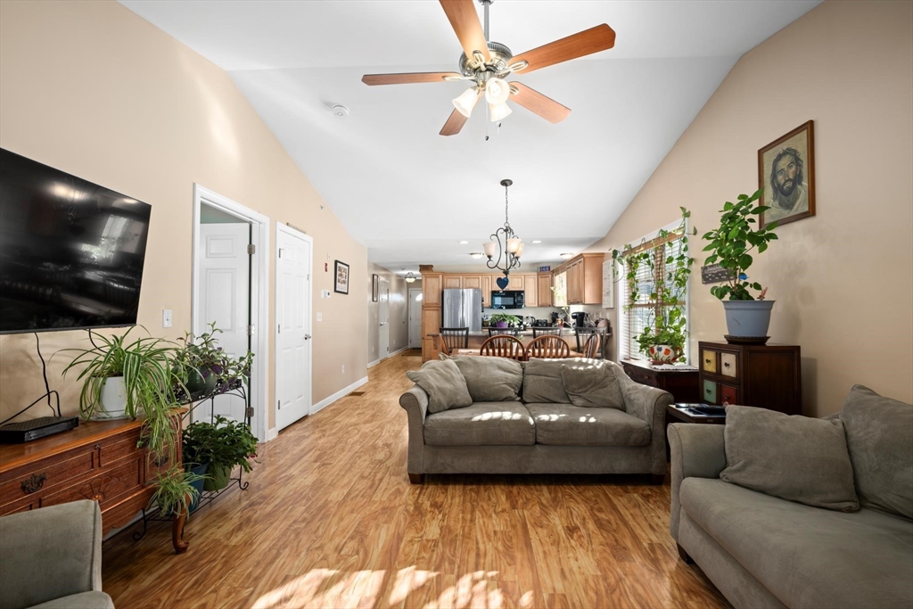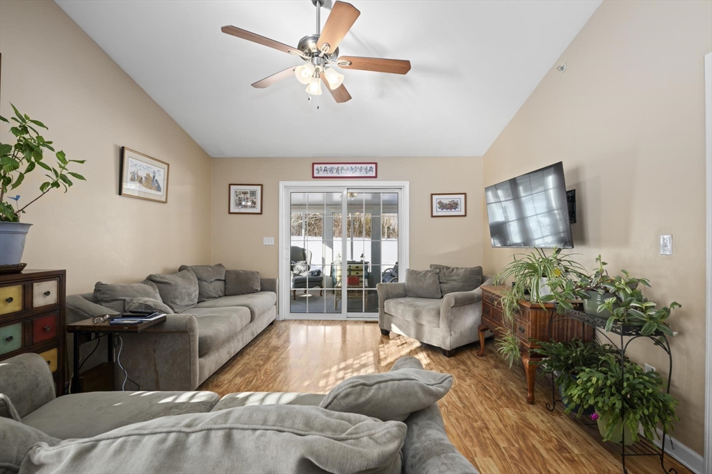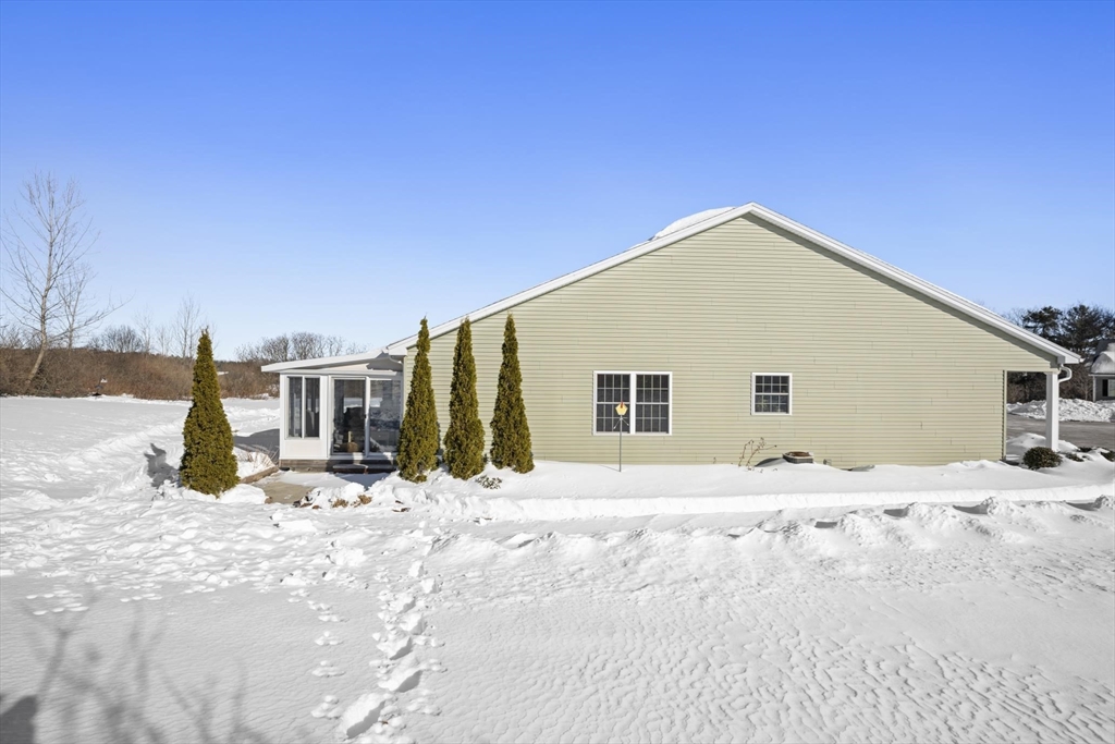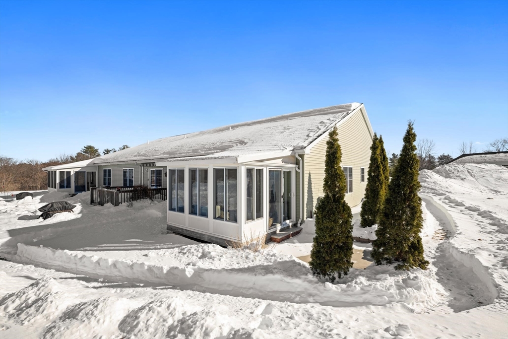 Rare opportunity to own in the desirable Twin Elm Estates 55+ community! This beautiful, Ranch style, end unit has an open floor plan with cathedral ceilings! Features include central a/c, a one-car garage, laminate flooring, a gorgeous kitchen, two spacious bedrooms, two full baths and first floor laundry! This unit also has sprinklers! Need more space? Sit out in your private 3-season room and enjoy the wonderful, professionally landscaped grounds! In addition to the tons of storage space in the basement, there is a 13' x 16' finished room which would make a perfect home office, workshop or playroom (no heat)! The unit is located on a lovely cul-de-sac and is very near Pine Ridge Country Club, shopping and restaurants! This unit is move-in ready!