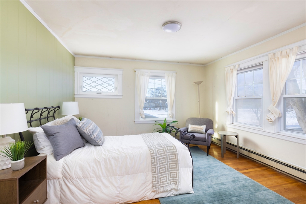 Overlooking Cabot Park, this lovely home includes a separate studio apartment. It is 1/2 mile to the Newtonville commuter rail & village, and offers easy access to public schools and commuting routes. The main residence has 3 bedrooms, 1.5 bathrooms & a finished basement. The apartment is perfect for an office, guests or rental income. A covered front porch welcomes you. There is a large living room with a fireplace & French doors to the family room. Open to the living room is a lovely dining room that leads to the spacious kitchen with ample workspace and a sun-filled breakfast area that opens to the family room with sliders to the deck. There is also a rear entry area with steps to the driveway. A powder room completes this level. On the second floor are 3 good sized bedrooms, an updated full bathroom and outfitted walk-in closet. The lower level has several finished rooms and a workshop area. The apartment is reached via two exterior staircase and includes a full bath & kitchenette.
