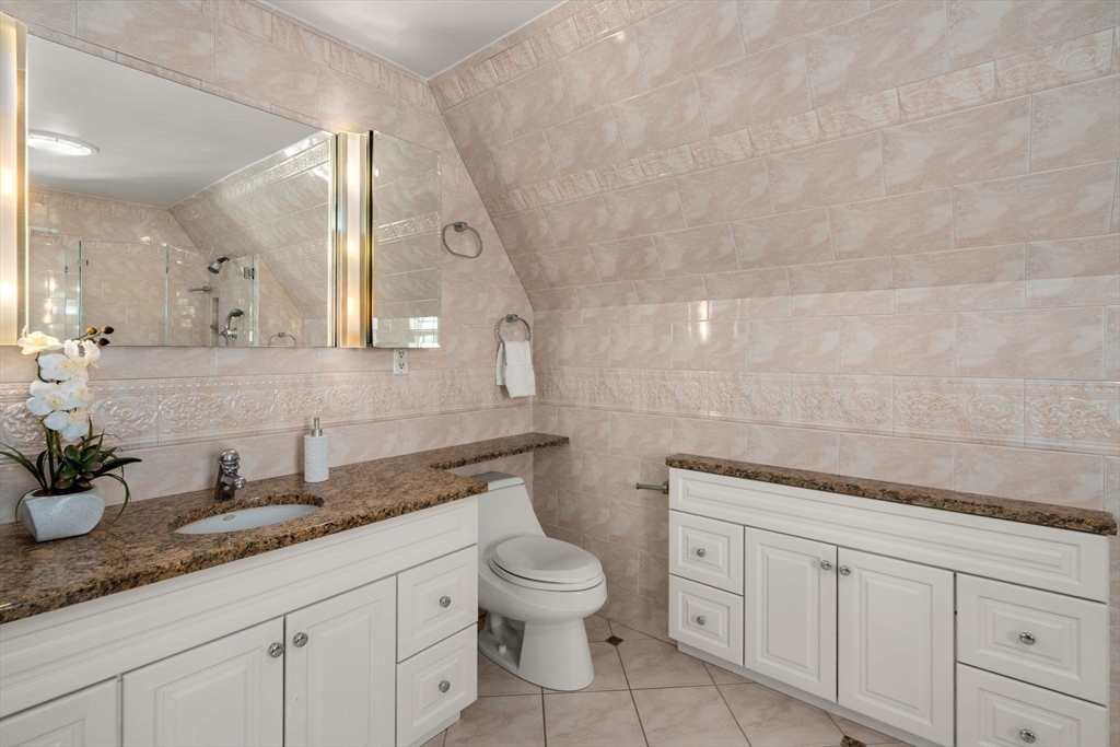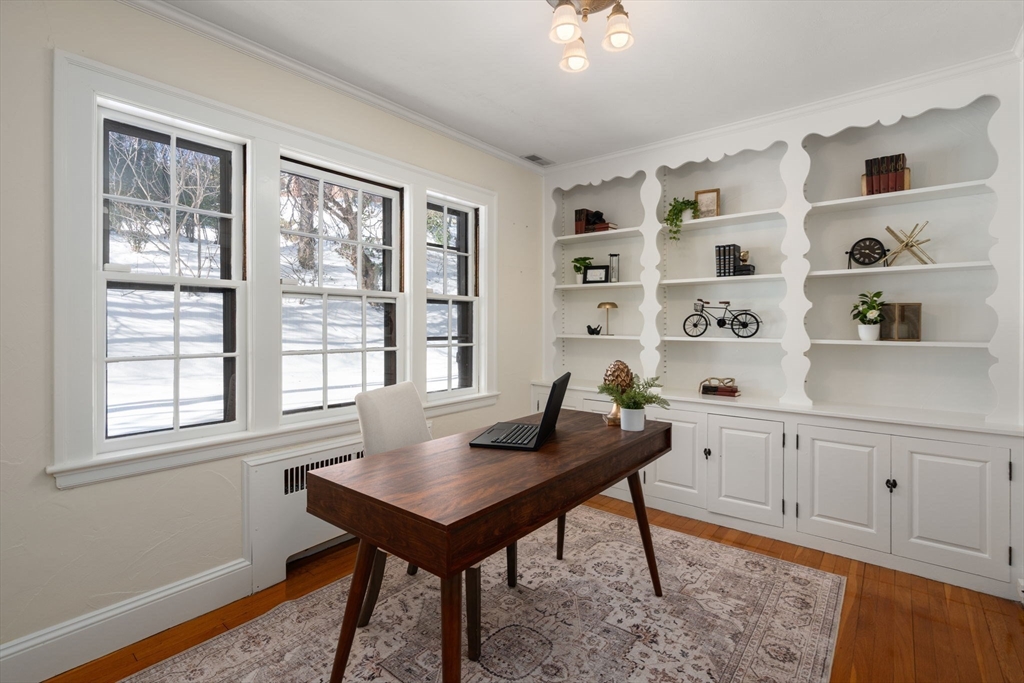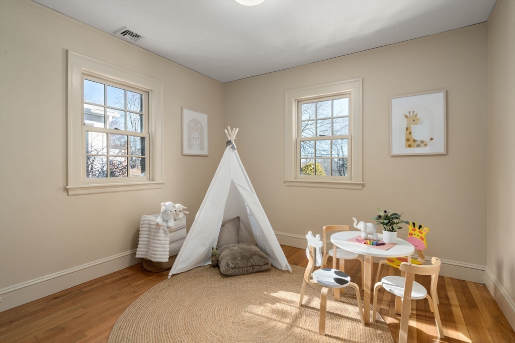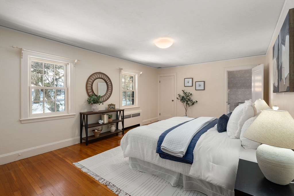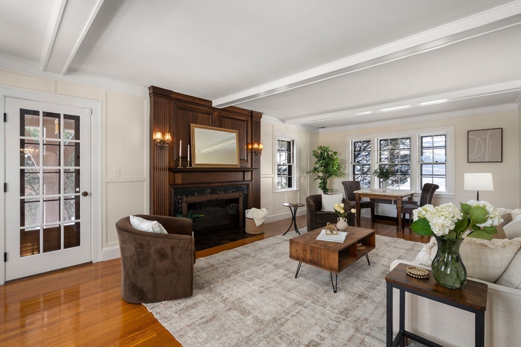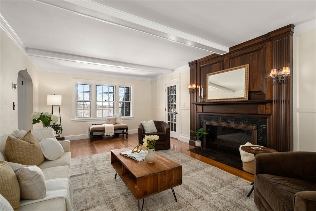 ENCHANTING South Brookline English Tudor in impeccable condition. Meticulously cared for, this 5-bedroom, 4-bath home offers timeless character paired with modern comfort, including a 2-car garage, central A/C, and radiator heat. The inviting first floor features a formal living room with beamed ceiling, a formal dining room, and hardwood floors throughout. The renovated kitchen boasts custom cabinetry, paneled appliances (Sub-Zero refrigerator, Miele oven and dishwasher), a generous eat-in area, and an adjacent nursery ideal as a bedroom/den. An additional first-floor office/library offers flexible living space. The second floor includes two spacious primary suites and two additional bedrooms. The top floor features a large great room and fifth bedroom, perfect for guests, play, or media. The basement is partially finished with a fireplace and laundry. Ideally located with easy access to South Brookline’s shops, restaurants, and amenities—this is a truly special home not to be missed.