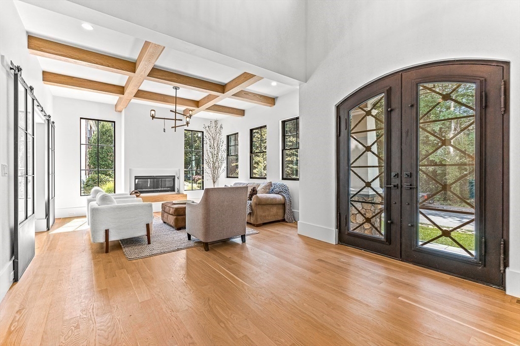 This STUNNING newly constructed home facing Old Village Drive redefines modern luxury! Designed w/ both elegance & everyday comfort in mind, this residence blends style w/ ease of living. The 8’ arched, handcrafted wrought-iron front doors open to a grand 20' foyer, showcasing soaring 10' ceilings, custom rift-sawn beams, and expansive floor-to-ceiling windows. With 25 years of expertise, the master builders commitment to exceptional quality & craftsmanship shines through every detail. Spanning four meticulously finished levels, this home leaves nothing to be desired. Highlights include a chef's kitchen w/ dual islands, vaulted ceilings, wine fridge, coffee bar, charming breakfast nook, butler's & dry pantries, a direct entry first-floor office or in-law suite & full third floor w/ hardwood floors & bath. The expansive lower level offers a family room, movie theatre, game room, gym plus private entry separate living quarters w/full in-law/au-pair suite w/ kitchen, 2nd laundry,BR & bath