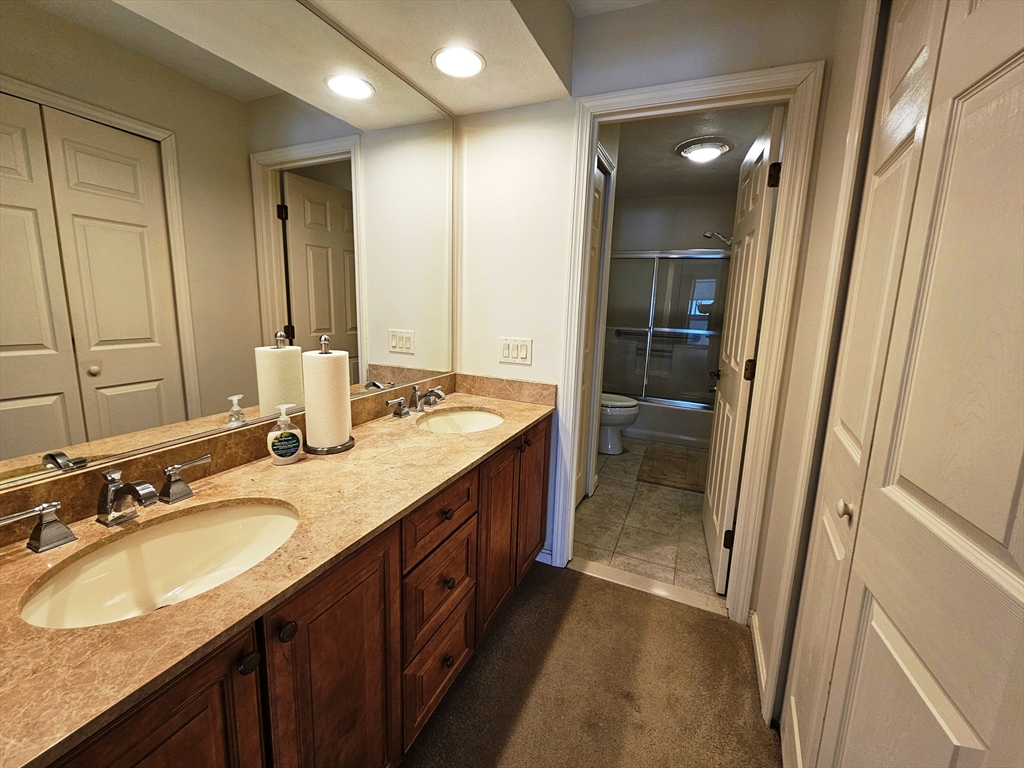 Welcome to this updated 2-bedroom, 2½-bath townhouse in desirable Maple Woods Farm. The eat-in kitchen features maple cabinets, granite countertops, a center island, and stainless-steel appliances. An open living and dining area offers cherry wood floors and a wood-burning fireplace, with sliding doors to an enclosed patio and custom outdoor space. French doors lead to a flexible study or home office, plus a convenient half bath. A laundry room and mudroom connect to the 2-car garage with ample storage. Upstairs are two spacious bedrooms, each with a full bath. The primary suite includes a walk-in closet and private enclosed porch with wooded views. Additional highlights include central air, natural gas heat, newer hot water tank, and town water/sewer. Community amenities include a pool, clubhouse, and manicured grounds. Ideally located on a quiet dead-end street near all amenities. Check out the attached 360 tour! A must see. Call today.