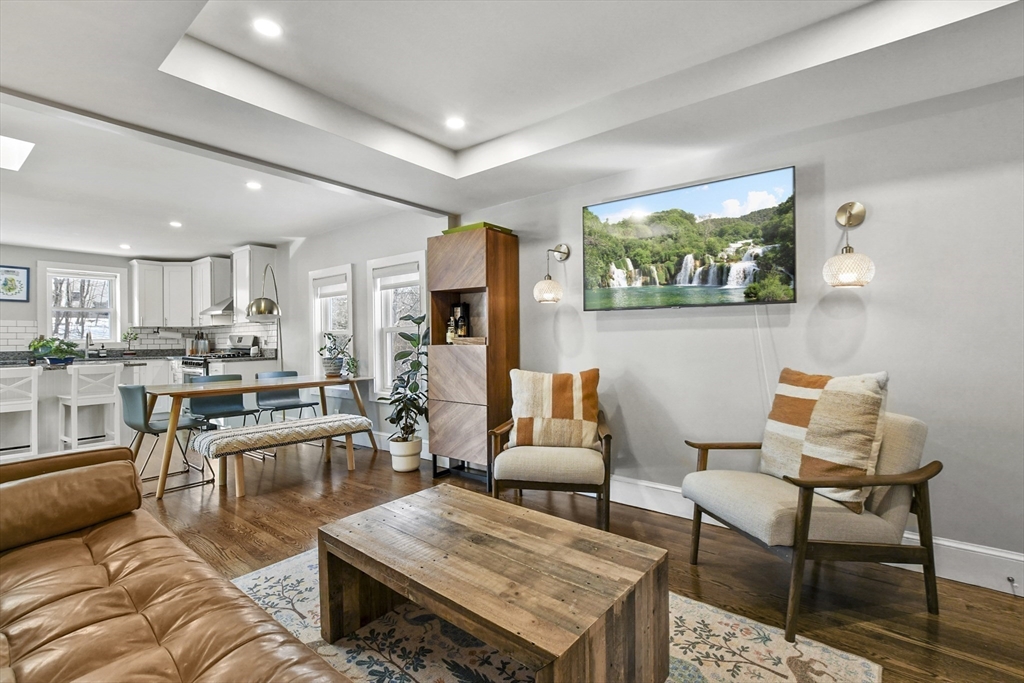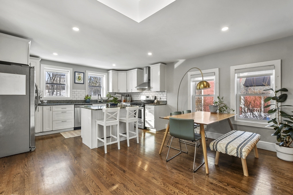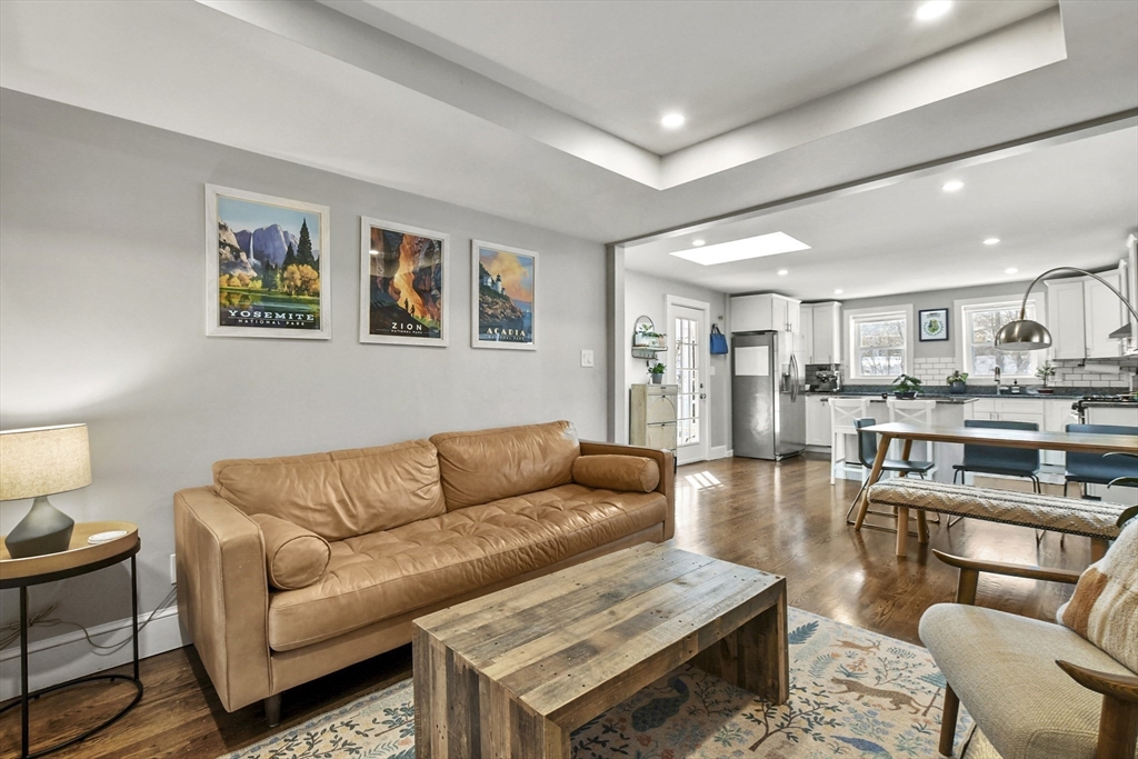 Welcome to this charming 3-bedroom, 3-full-bath home in Natick. The updated kitchen shines with granite countertops, stainless steel appliances, and a welcoming center island, opening seamlessly to the dining area and sitting room for an open-concept feel. A sun-filled living room with beautiful bowed windows creates an inviting space to relax. The first-floor primary bedroom, featuring an en-suite bath offers desirable single-level living. The main living level is complemented by a second full bath with laundry. The second level boasts two spacious bedrooms and a third full bath. With easy access to Rt 9, i90 and commuter rail, this home offers multiple commute options. Conveniently located near The Natick Collection, shopping, dining and more!