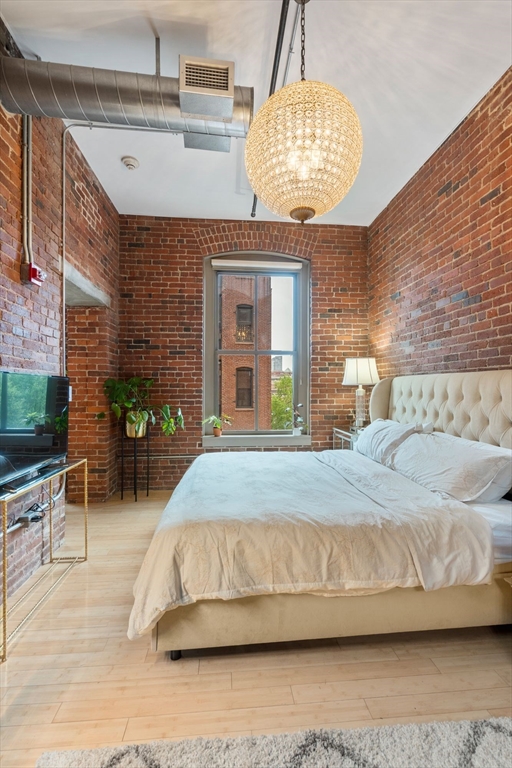 Welcome home to this exceptional brick-and-beam 1+DEN loft in highly sought-after Fort Point building. Soaring ceilings and oversized windows flood the space with natural light and offer views of Channel Center St and downtown Boston. Updated kitchen features s/s appliances, breakfast bar with seating for four, and dedicated dining area. Spacious primary bedroom accommodates king-size bed and custom walk-in closet. Versatile den is outfitted w a custom sliding door and wall-to-wall built-in storage, ideal for home office or guest space. Thoughtful upgrades include fresh paint, bathroom/kitchen renovations, and new lighting. Additional highlights include in-unit washer/dryer, central air, and monthly rental parking available across the street. Tucked away on a quiet street yet moments from the best in both Seaport and South Boston, this is urban loft living at its finest. Convenient access to public transportation, South Station, Amtrak, major highways, Logan Airport and Boston Harbor.