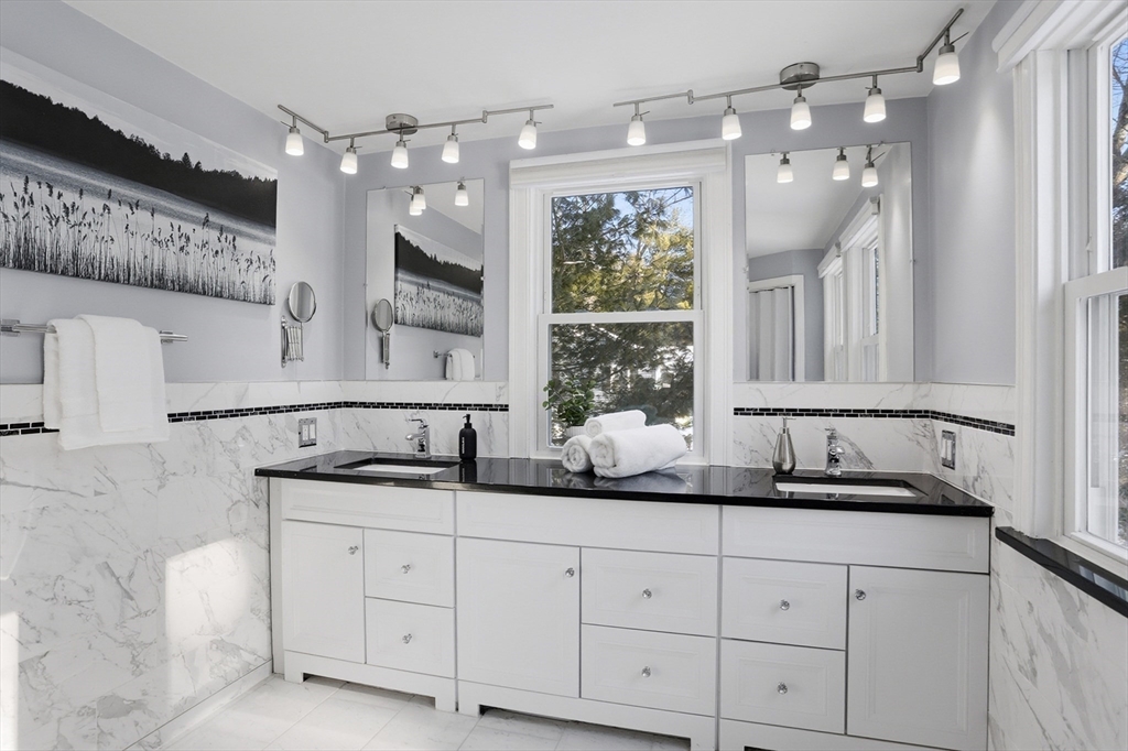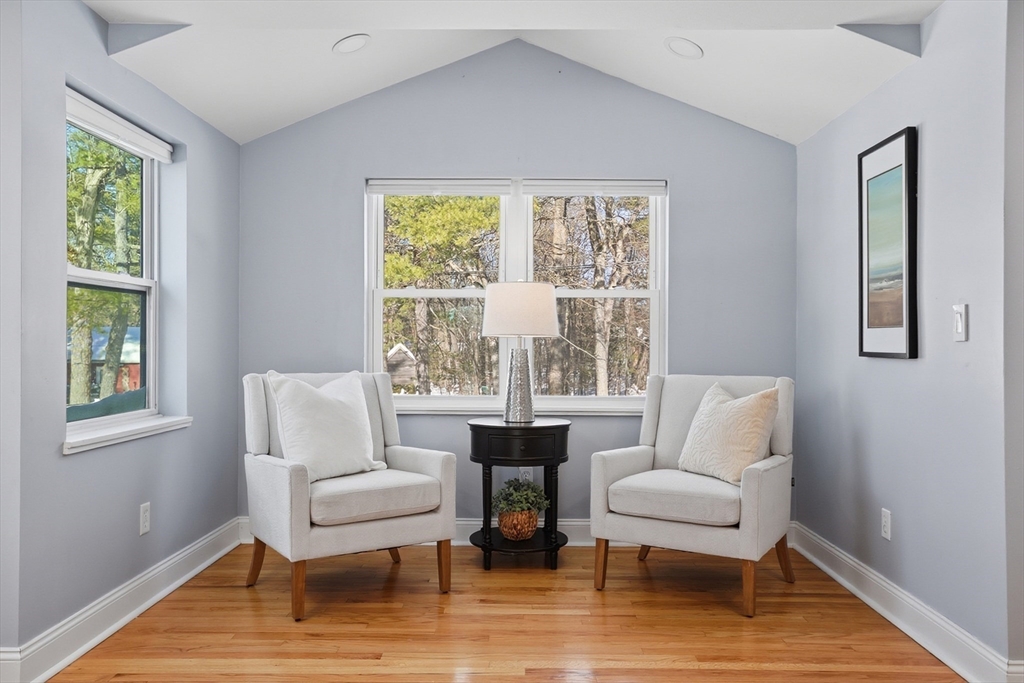 This exciting Contemporary Colonial offers an abundance of space and flexible living areas, with a bright, open layout that welcomes you the moment you step inside. The white kitchen with extensive granite countertops sits at the heart of the home. Just off the kitchen, the step-down dining room is a showstopper with cathedral ceilings, dramatic chandelier, walls of windows, and slider leading to beautiful patio and level backyard. On the opposite side, enjoy a generous family room. Two additional rooms and a full bath on the main level provide incredible versatility (den, game room, guest space, or home office). Upstairs offers three bedrooms, including spacious Main suite with stunning bath and custom walk-in closet, plus another full bathroom. Gleaming hardwood floors, fully owned solar panels, and many major updates, including roof, siding, heating, and windows (see full list). Conveniently located on a sidewalk-lined road near town shopping, schools, train stop, and library.