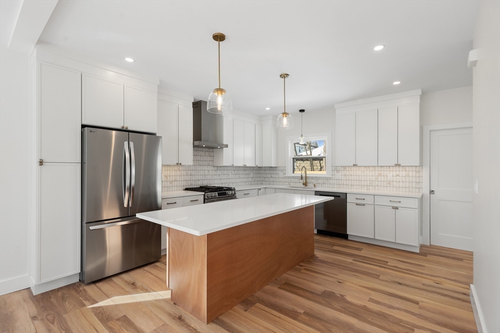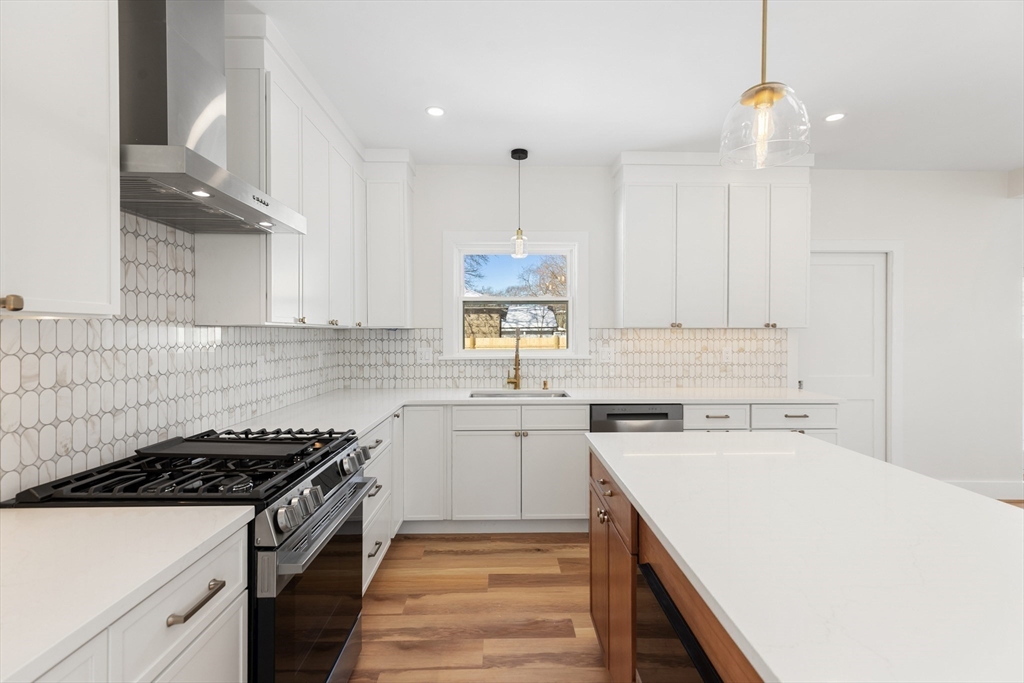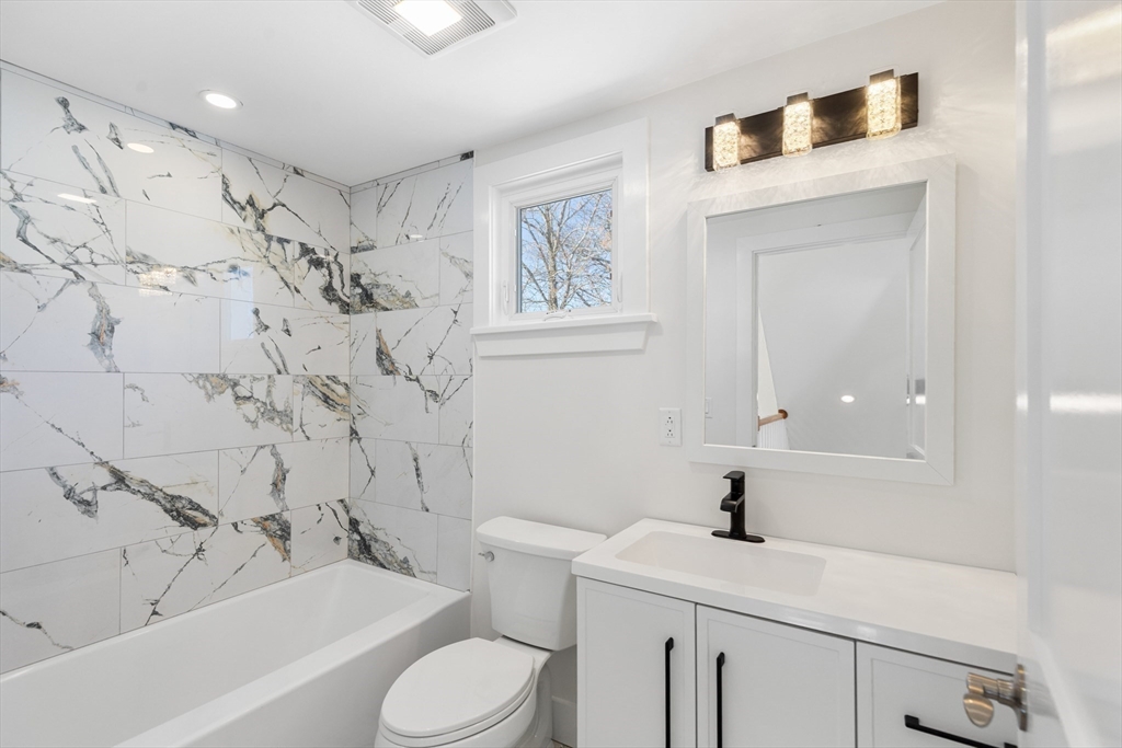 Completely remodeled single-family home featuring 5 bedrooms, 3.5 baths, and finished basement. The sun-filled main level offers a stunning open-concept kitchen and dining area with abundant cabinetry, beautiful countertops, large island, stainless steel appliances, recessed and pendant lighting. Also on the main level: living room with backyard access, full bath, and private primary suite with custom closet and gorgeous en-suite bath. The second floor includes three generously sized bedrooms and a full bath. The third floor offers an additional bedroom and bonus room, ideal for an office or flex space. Hardwood floors throughout, central air, and all-new electric, plumbing, HVAC, siding, and roof—truly move-in ready. Finished basement provides extra living space with family room and half bath. Charming front porch, new grass and landscaping, 20x20 patio, and paved driveway with four off-street parking spaces. Ready For Electric Car Plug To Be Added. Schedule your showing today!