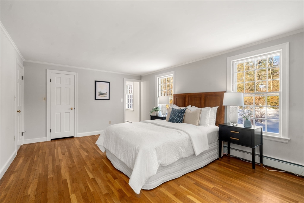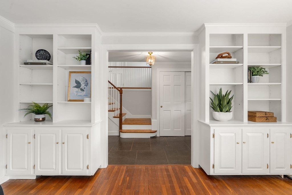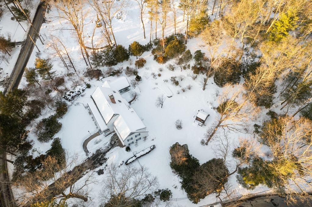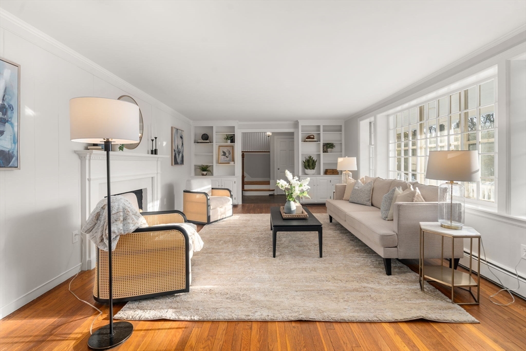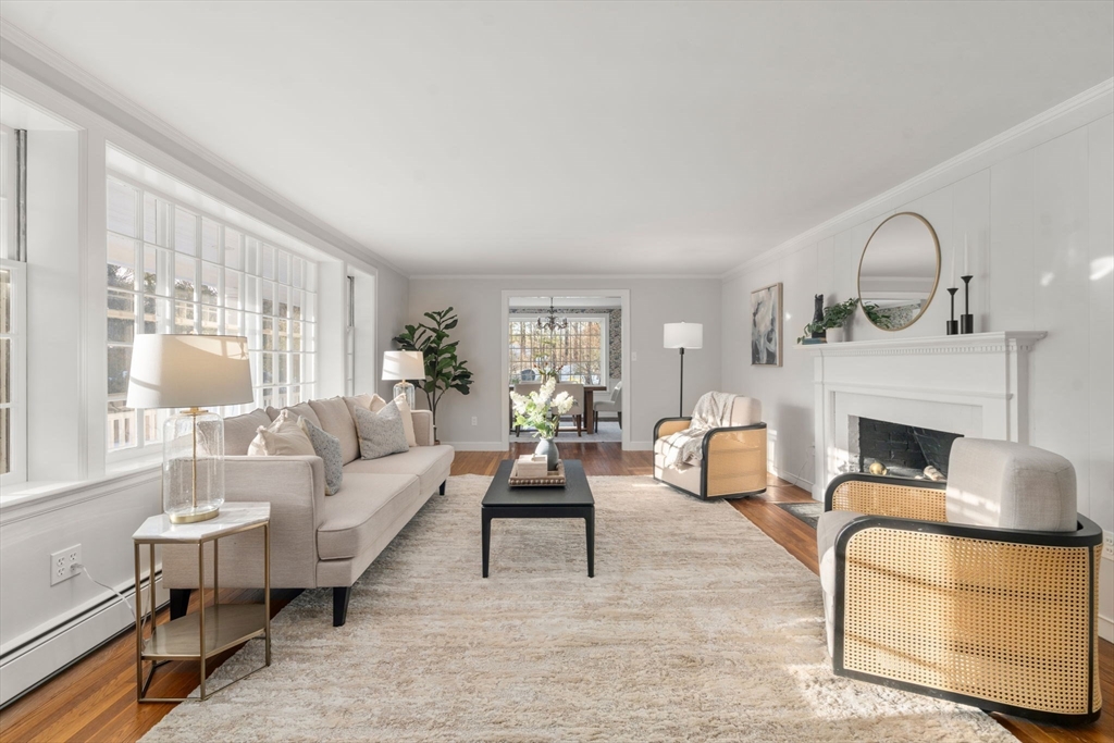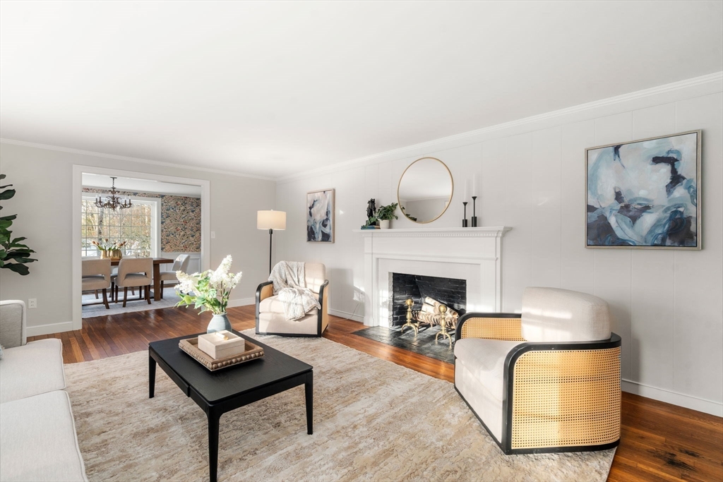 Expansive, character-filled colonial with charming farmer’s porch set on a spectacular 1.39-acre lot in the highly sought-after Claypit Hill neighborhood. This special property showcases lush flora and fauna, established perennial plantings, and stone walls, creating a private and picturesque setting. Inside, the home offers spacious and inviting living areas, including a sun-filled living room and formal dining room, both featuring hardwood floors. The cozy den with gas fireplace insert and large picture window provides a warm gathering space while offering serene backyard views. The sunroom features cathedral ceiling and slider to the patio, seamlessly blending indoor and outdoor living. The second floor features five generously sized bedrooms, all with hardwood flooring, including a primary suite with 2025 renovated full bath and walk-in closet. The finished lower level offers excellent flexible space, perfect for a bonus room, media room, or home gym.